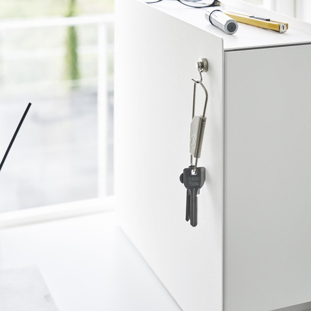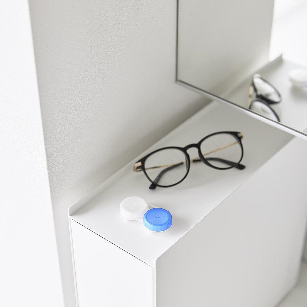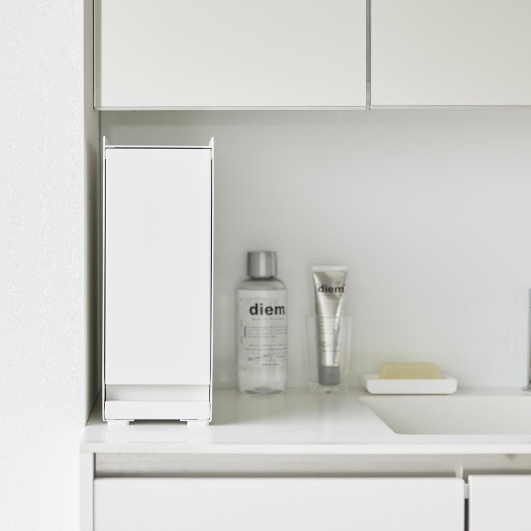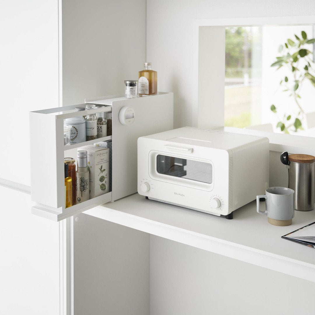 目隠しできる引き出し収納生活感の出やすい日用品をまとめて収納できる引き出し収納です。普段は中の物を隠しておけるので見た目もすっきりと片付きます。天板には眼鏡などをちょい置きすることも可能。スチール製なので側面をマグネット収納としてお使いいただくこともできます。どのお部屋にもなじみやすい、2色のカラーバリエーションカラーは、明るい印象のホワイト、スタイリッシュなブラックをご用意しました。リビングや玄関などどこに置いてもマッチするシンプルなモノトーンカラーです。設置場所のインテリアに合わせてお好みのカラーをお選びください。家中どこにおいても使えるスリムな小物収納ちょっとしたスペースにも置きやすい幅12.5cmのスリム設計です。キッチンや玄関、リビングや洗面所などにさりげなく置けて収納スペースを増設できるのがうれしいポイント。引き出しの中は二段式で、収納物に合わせて2.5cm間隔で高さ調節が可能です。キッチン雑貨の収納にカップボード上などに設置してキッチン小物を一括収納。ごちゃごちゃしがちな調味料やスパイス、オイルやジャム、お茶やスティックシュガーなどをまとめて収納するのに便利です。キッチン周りがすっきりとした印象に整えられます。玄関がチラ見えしても慌てないお出かけ用のハンカチ、アルコールや消臭スプレー、防水スプレーなどをまとめて収納しておけます。シューズボックスの上に整理して並べていたとしても雑然とした印象を与えてしまいますが、隠せる引き出し収納を活用すれば生活感をオフに。