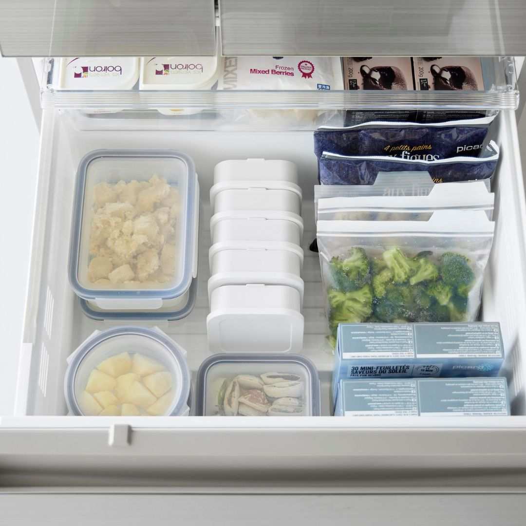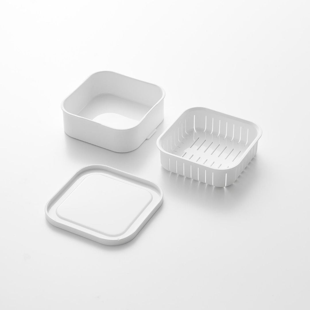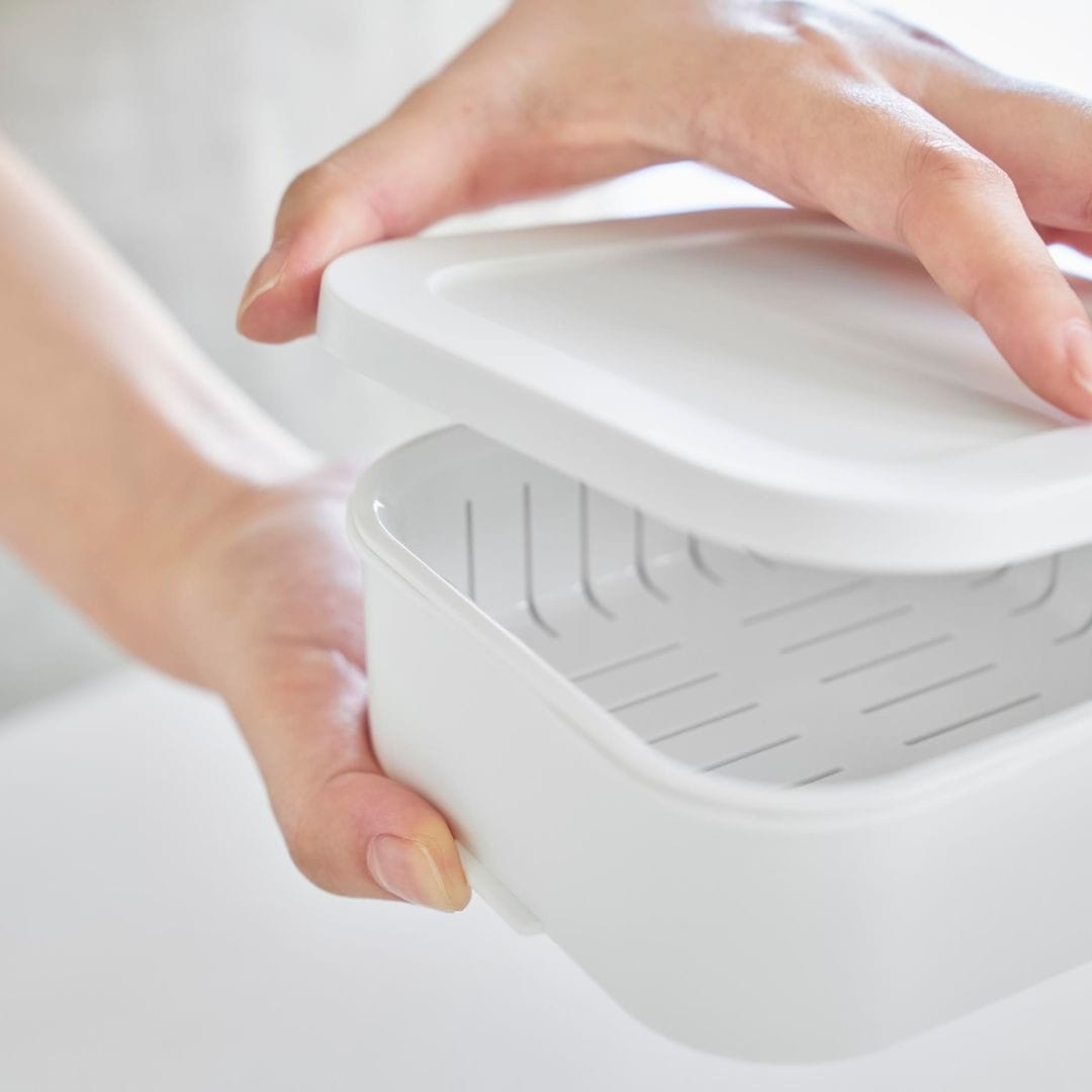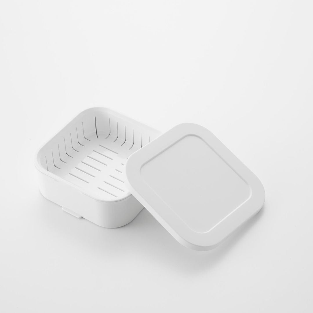 スチームのような効果でふっくら食感に蓋をしたまま電子レンジで温めるだけで、炊き立てのようなごはんに仕上がります。ザルが付いた二重構造の容器により、蒸し器のように蒸気がごはん全体に行き渡りムラなくふっくらとおいしいごはんに。蒸し器代わりとして冷凍焼売や温野菜作りにもご活用いただけます。キッチンになじむ、2色のカラーバリエーションカラーは、清潔感のあるホワイト、スタイリッシュなブラックをご用意しました。キッチンに似合うシンプルなモノトーンカラーです。キッチン小物やインテリアに合わせてお好きなカラーをお選びください。「べたっとしたおいしくないごはん」にならないごはんが解凍される際に余分な水分がザルから落ちることで、べたつきや水っぽさを感じないごはんに仕上がります。冷凍ごはんにありがちだった『容器底のごはんがべちゃっとしてる』問題を、ザル付き容器が解決。立てても横でもOK。 取り出しやすいように冷凍保存丸みを帯びた四角いフォルムは冷凍庫内にデッドスペースを作ることなくすっきりと保管できます。立てても横でも収納できるので、収納スペースや冷凍庫内の高さにあわせて取り出しやすいように入れていただけます。食洗機対応可能でお手入れらくちんすべてのパーツが食洗機に対応可能です。食事後は他の食器や調理器具と一緒に食洗機に入れるだけの簡単お手入れ。凹凸が少ない容器ながら手洗いもしやすいです。容器の底にある突起に指を引っ掛けると蓋を開けるのが簡単です。