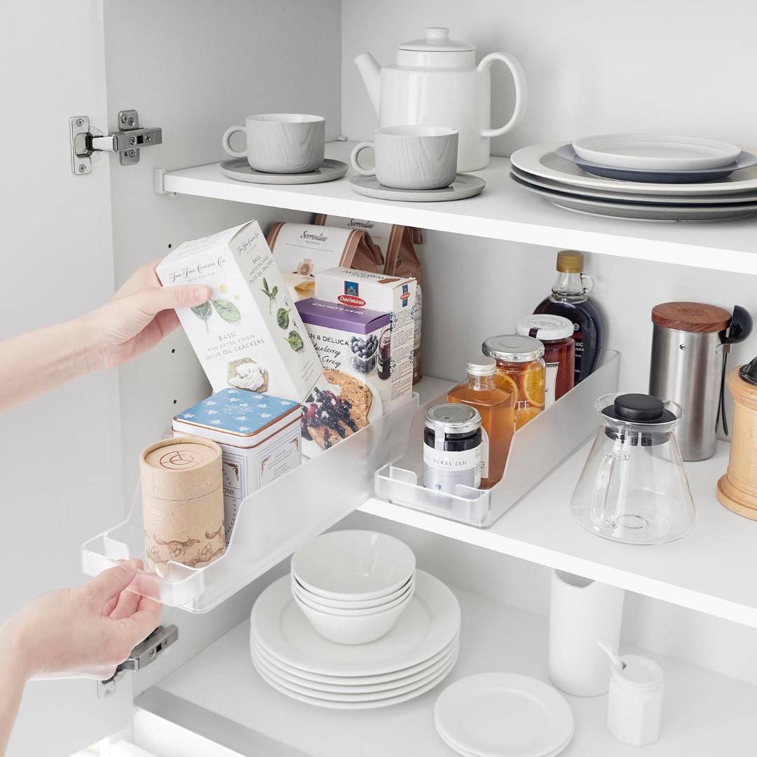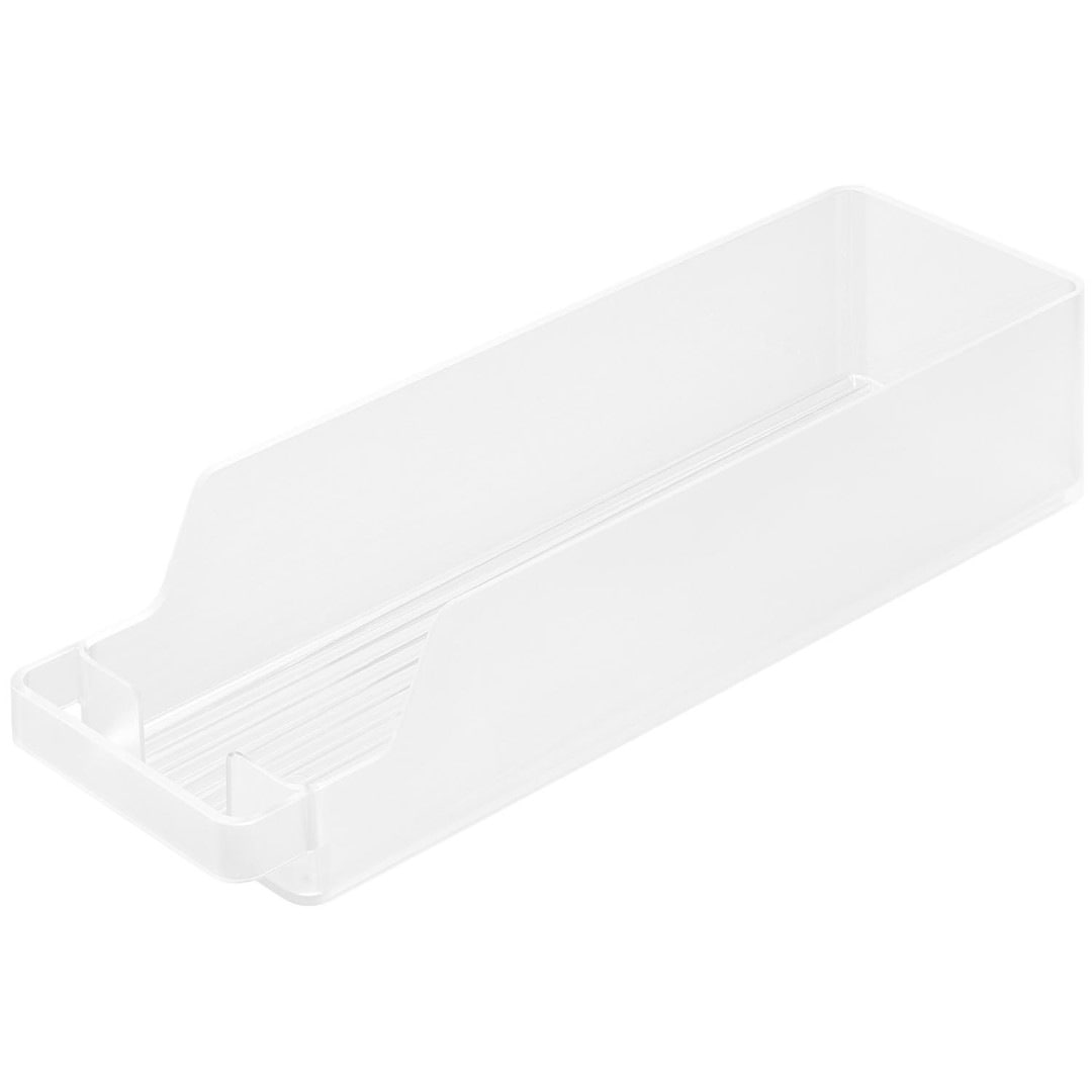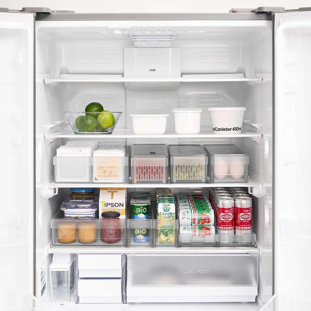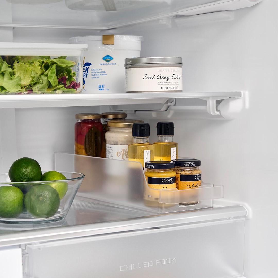 冷蔵庫の中をスッキリと整頓。奥行きのある冷蔵庫の中を無駄なく有効利用できる『冷蔵庫中収納ケースシリーズ』から、ミニ缶やスリム缶をまとめて収納できる缶ストッカーSが登場。 底面に傾斜がついていて、缶を1本取り出すごとに後ろの缶が転がって手前に出てくるミニ缶用のストッカーです。引き出して使えるから冷蔵庫の奥まで無駄なく使えます。シンプルな2種類のカラーバリエーション カラーは、清潔感のあるホワイトと、シックなブラックをご用意しました。シンプルなモノトーンカラーで、冷蔵庫の中でもなじみやすい色味です。冷蔵庫本体のカラーで選んだり、食品ごとにカラーを変えたりなどお好みに合わせてお選びください。いつでも手前からとれる設計 底面に傾斜がついているので缶を1本取り出すごとに後ろの缶が転がってきます。いちいち手前に移動させなくても、常に手前からとれるのはうれしいポイント◎。スリム缶なら立てて12本まで収納でき、10.6cm以内の缶なら横向きに収納できます。冷蔵庫の中だけじゃない。パントリーの使用にも こちらの収納ケースは、冷蔵庫の中だけでなくパントリーや食器棚での使用にもおすすめです。取手付きで棚の奥のものも取り出しやすくなります。缶以外に、マグボトルやお弁当箱などの収納にも。食器棚や吊り下げ戸棚での使用も便利です。シリーズで合わせて使うのがおすすめ◎ 冷蔵庫中収納シリーズと並べて使えば冷蔵庫の中をスッキリ整頓できます。 こちらの缶ストッカーSの他に、仕切り付きの『冷蔵庫中収納ケース』『蓋付き卵ケース』をご用意しております。お好みのサイズを組み合わせてお使いいただくと、より使い勝手も便利に◎。※同シリーズの他サイズにつきましては別ページにてご確認いただけます。