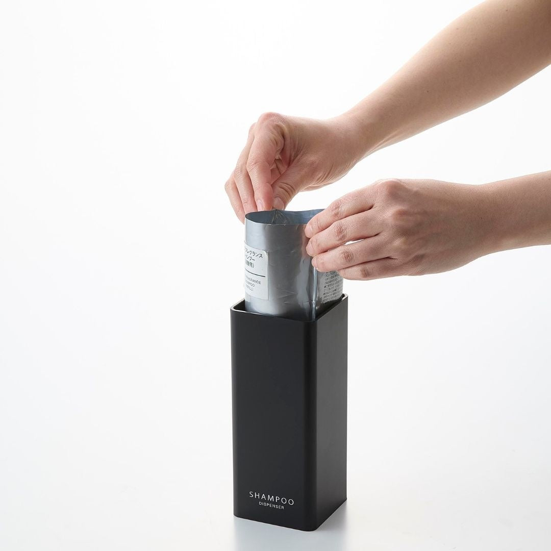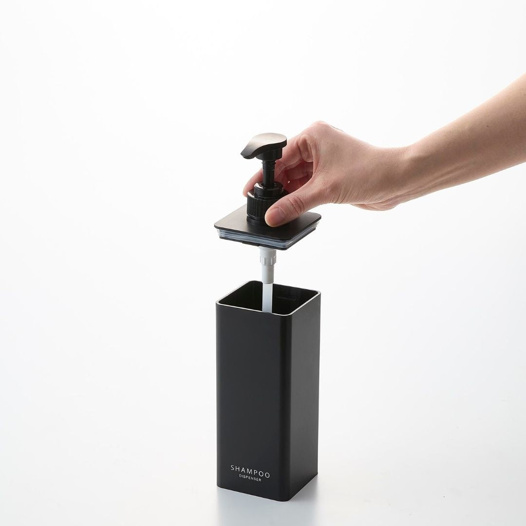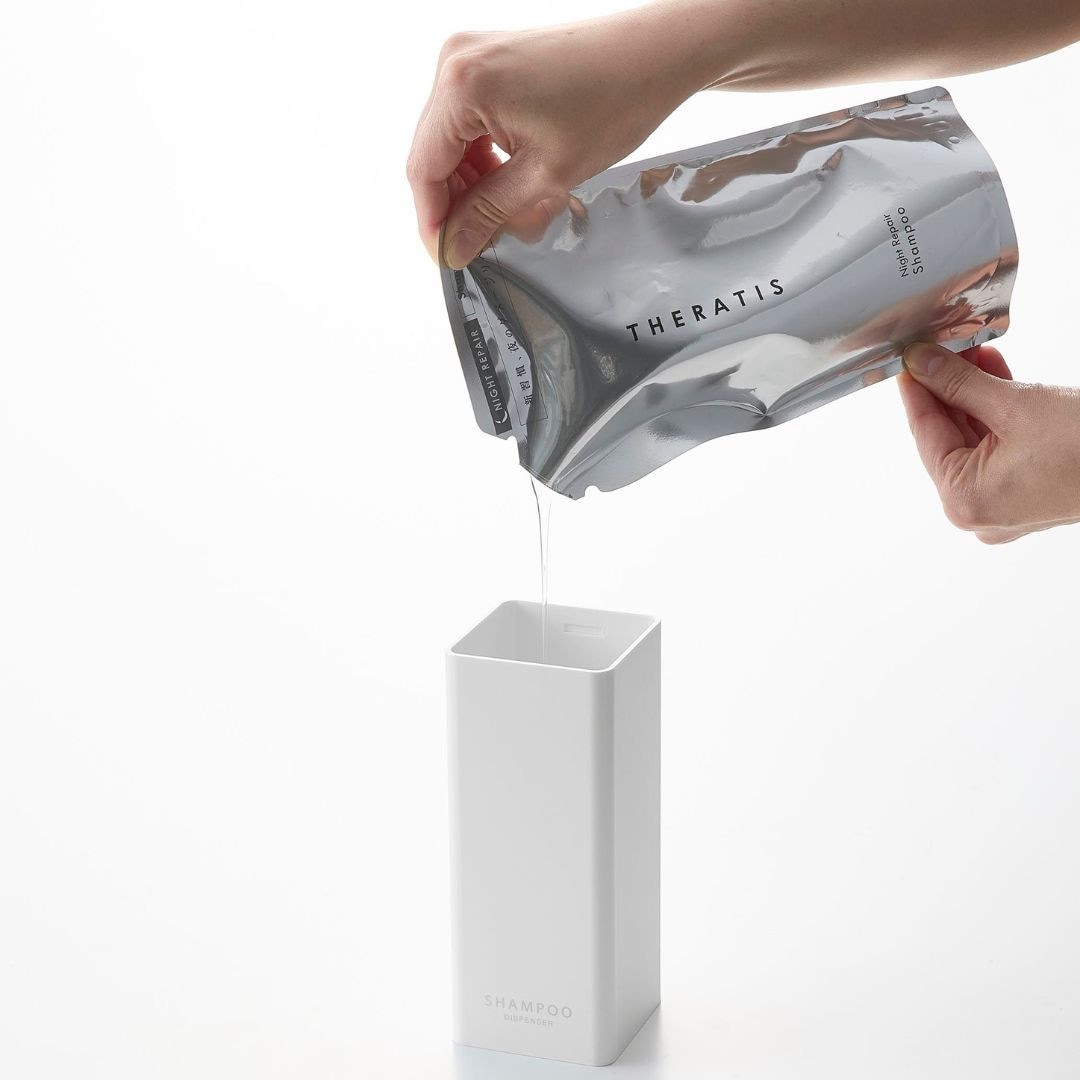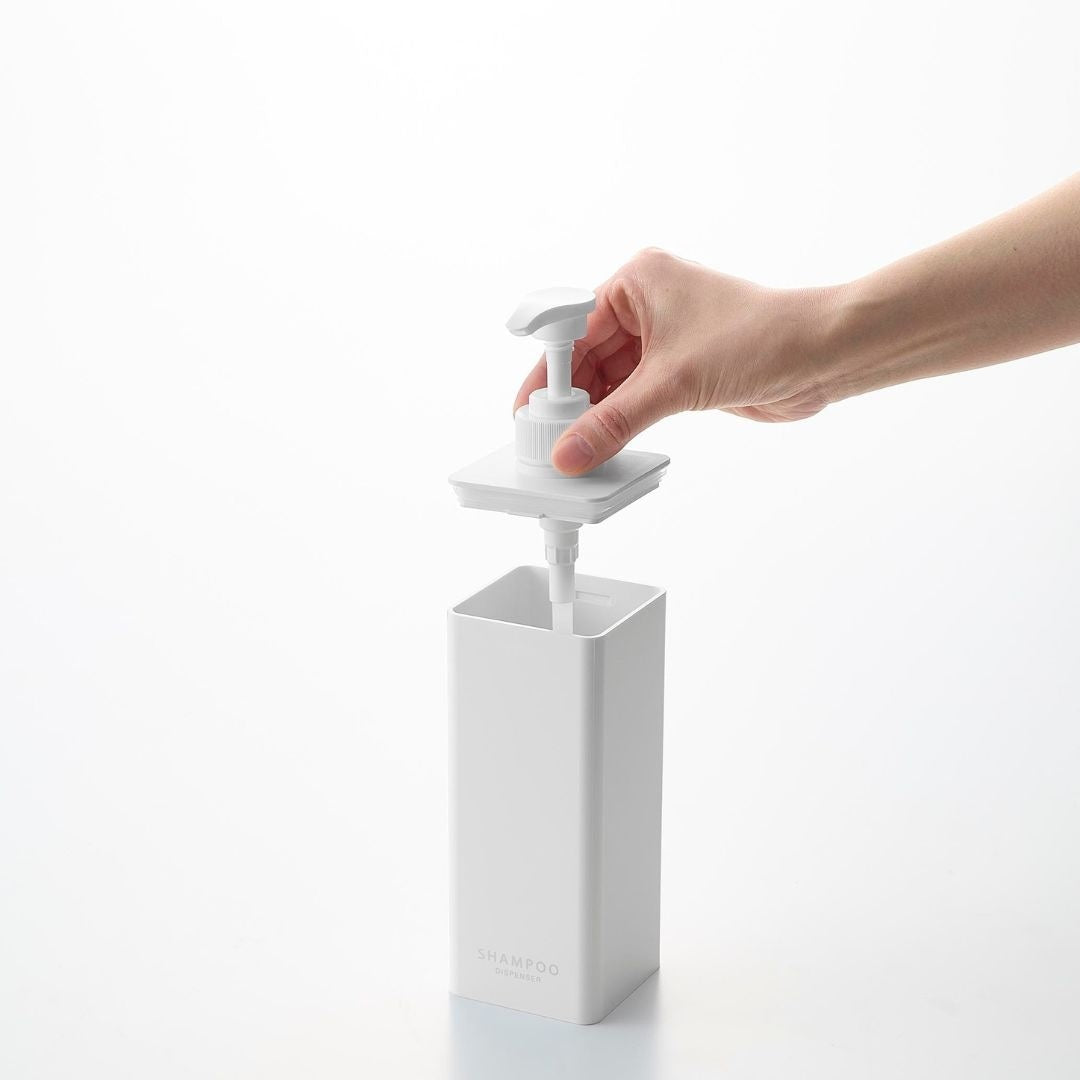 安定性向上。 ワンプッシュでたくさん出せるシャンプーボトル ポンプ位置を奥にすることで当社従来品よりも滑り落ちが改善されたディスペンサーです。そのままポンプを押しても滑り落ちづらく、液体を安定して出せます。蓋が大きく外れるのでお手入れや詰め替えが簡単です。バスルームにマッチする、2色のカラーバリエーション カラーは、明るい印象のホワイト、スタイリッシュなブラックをご用意しました。清潔感のあるバスルームに合わせやすいシンプルなモノトーンカラーです。壁面の色やバスチェアなどのアイテムに合わせてお好みのカラーをお選びください。「tower」の従来品よりもたっぷり出せる ワンプッシュで出る量が1.6cc→3.6ccに増量されました。ロングヘアだと1回に使うシャンプーの量も多くなります。これまで必要量を出すのに2~3プッシュしていた方は、一度でたっぷりシャンプーが出せるディスペンサーに切り替えてみるのも◎。詰め替え用パックをそのままIN。 ボトルの上部がパカッと大きく開きます。開口部が広いのでシャンプーの詰め替えがラクちん。詰め替え中に注ぎ口からこぼしてしまう心配がありません。詰め替え用パックの上部を切り開いて、パックごとボトルに入れて使用することもできます。シリーズで揃えて スッキリ統一感 別ページでご用意している『コンディショナー』、『ボディソープ』と合わせて使えば統一感も出てバスルームもスッキリ。 シンプルな見た目のスクエア型で、どんなバスルームにも溶け込むデザインです。同色で並べても、色違いで揃えても◎。※壁面にマグネットでつけられるマグネットタイプも別ページにてご用意しております。※こちらは『たっぷり洗剤が出るディスペンサー シャンプー』の商品ページです。