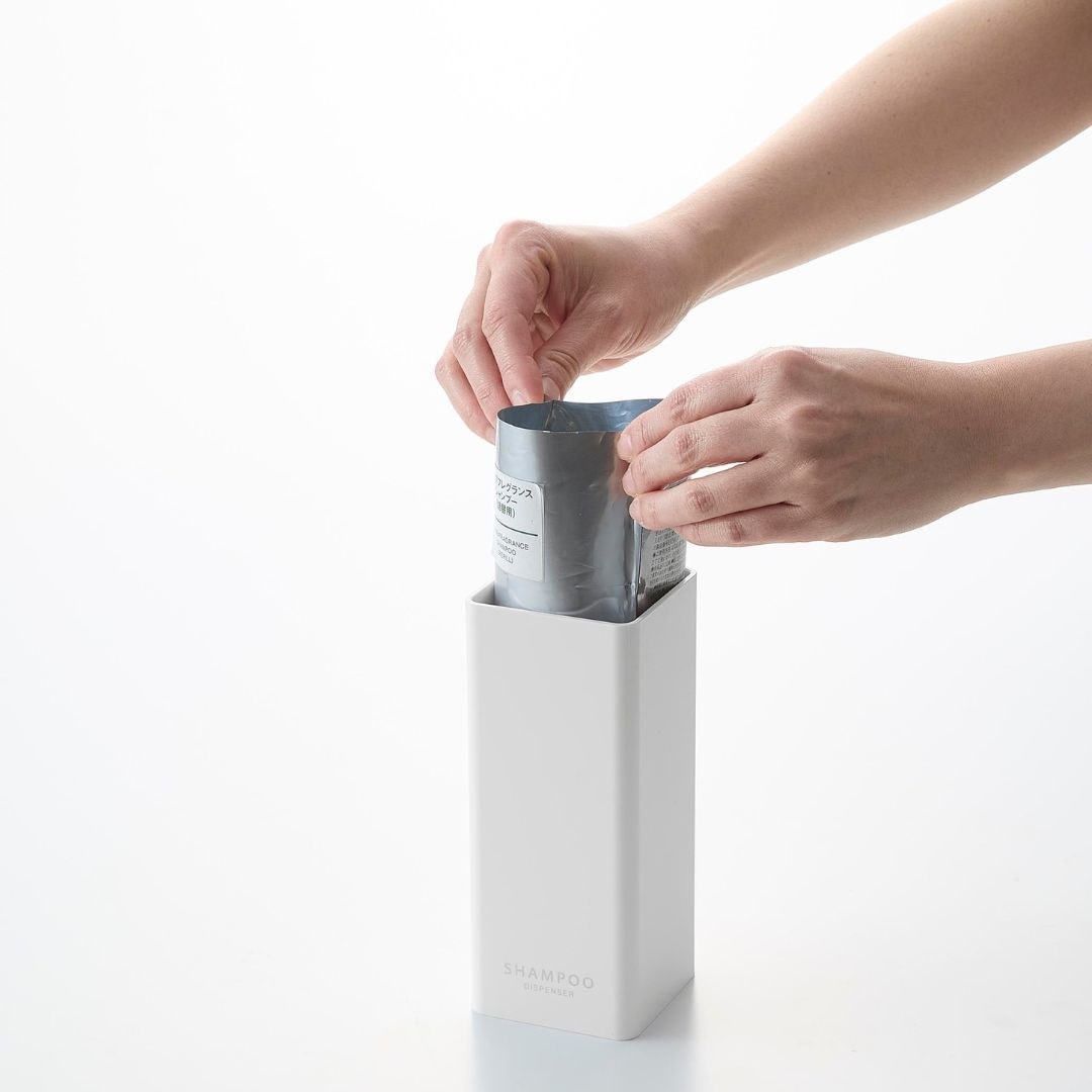 安定性向上。 ワンプッシュでたくさん出せるコンディショナーボトル ポンプ位置を奥にすることで当社従来品よりも滑り落ちが改善されたディスペンサーです。そのままポンプを押しても滑り落ちづらく、液体を安定して出せます。蓋が大きく外れるのでお手入れや詰め替えが簡単です。バスルームにマッチする、2色のカラーバリエーション カラーは、明るい印象のホワイト、スタイリッシュなブラックをご用意しました。清潔感のあるバスルームに合わせやすいシンプルなモノトーンカラーです。壁面の色やバスチェアなどのアイテムに合わせてお好みのカラーをお選びください。「tower」の従来品よりもたっぷり出せる ワンプッシュで出る量が1.6cc→3.6ccに増量されました。ロングヘアだと1回に使うコンディショナーの量も多くなります。これまで必要量を出すのに2~3プッシュしていた方は、一度でたっぷり出せるディスペンサーに切り替えてみるのも◎。詰め替え用パックをそのままIN。 ボトルの上部がパカッと大きく開きます。開口部が広いのでコンディショナーの詰め替えがラクちん。詰め替え中に注ぎ口からこぼしてしまう心配がありません。詰め替え用パックの上部を切り開いて、パックごとボトルに入れて使用することもできます。シリーズで揃えて スッキリ統一感 別ページでご用意している『シャンプー』、『ボディソープ』と合わせて使えば統一感も出てバスルームもスッキリ。 シンプルな見た目のスクエア型で、どんなバスルームにも溶け込むデザインです。同色で並べても、色違いで揃えても◎。※壁面にマグネットでつけられるマグネットタイプも別ページにてご用意しております。※こちらは『たっぷり洗剤が出るディスペンサー コンディショナー』の商品ページです。