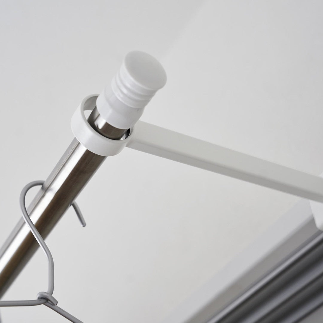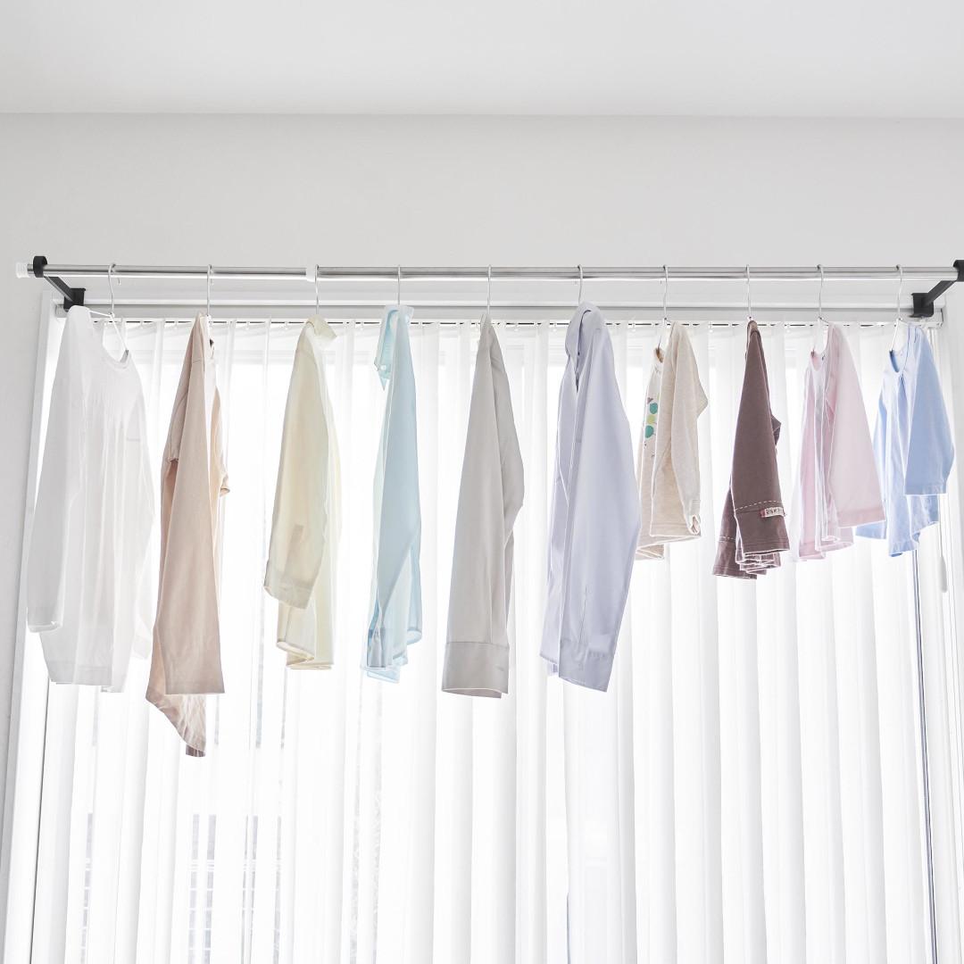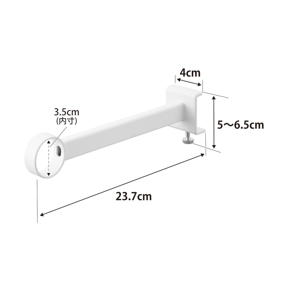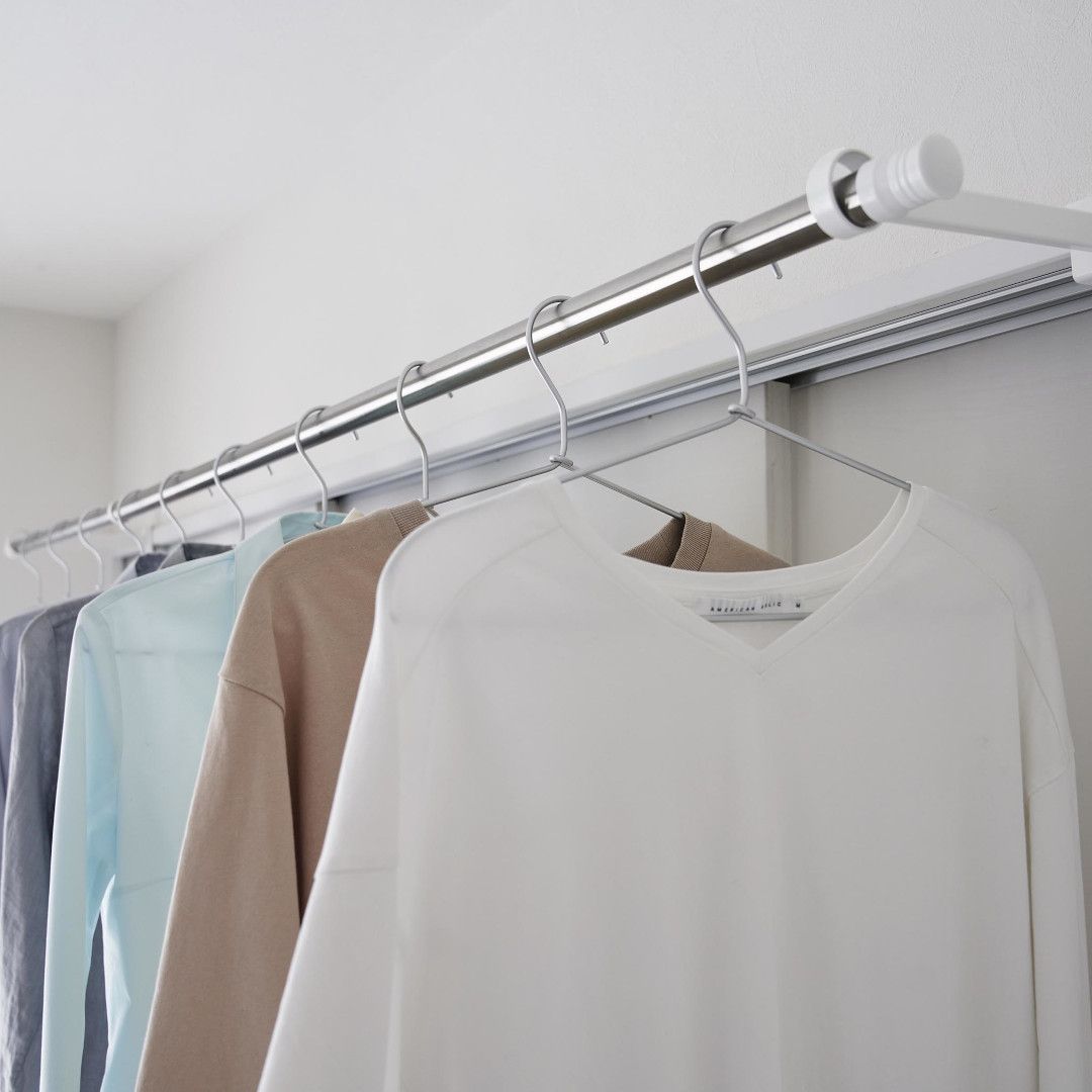 窓枠をランドリースペースにお家の中にある鴨居や窓枠などに取り付けて使える、物干しポールホルダーです。足りない物干しスペースを手軽に増設できます。ピンチハンガーも掛けやすいゆとりある奥行きがGOOD。※こちらの商品にポールは付属しておりません。お部屋になじみやすい、2色のカラーバリエーションカラーは、明るい印象のホワイト、スタイリッシュなブラックをご用意しました。どのお部屋にも合わせやすいシンプルなモノトーンカラーです。壁面や扉など設置場所に合わせてお好みのカラーをお選びください。扉やカーテンに干渉しにくいたっぷりとした奥行き設置面からポールまでの奥行きは18.5cmあるため、ドアやカーテンにハンガーがぶつからずに衣類をムラなく乾燥させられます。カーテンを閉めても干渉しづらいため、お出かけ前や夜にカーテンを閉めたまま干せて防犯面も◎室内干しなら雨でも花粉でも問題なし。梅雨や花粉の時期など、衣類を屋外に干せない時期は部屋干しの機会が多くなります。けれどいざ室内干しをしてみると、予想以上に干せるスペースが少ないことに気が付きます。物干しスペースが増えれば洗濯物が溜まらず、「着るものが無い。」なんて困りごとがなくなります。調節ネジで固定するだけのお手軽さ。 穴をあけずに設置上部にあるピンを枠にはめ込んだら、調節ネジを締めて取り付けが完了です。固定に使用する六角レンチは付属しているのでご自身でご用意いただかなくても大丈夫です。鴨居や窓枠などを上下から挟むように設置するため、しっかりと固定できて安心。