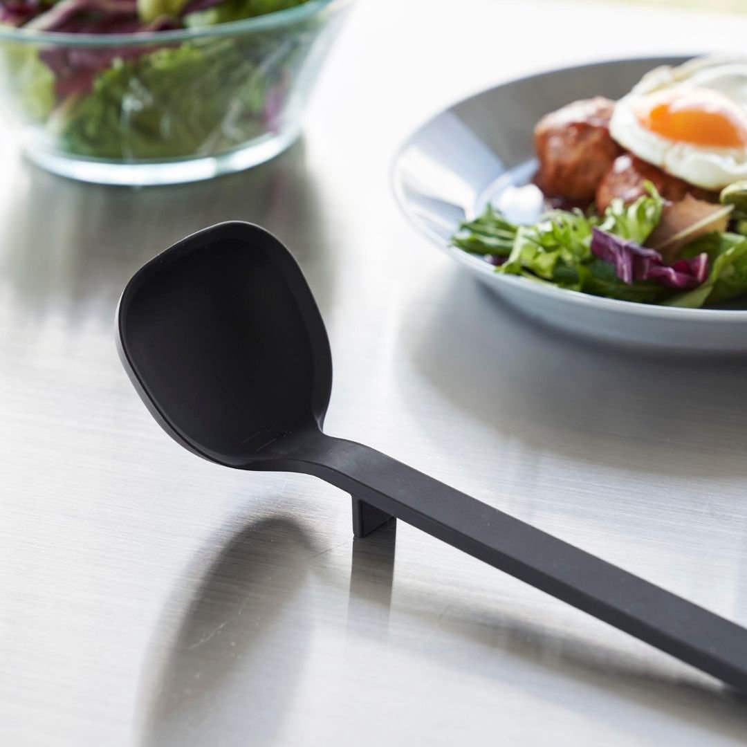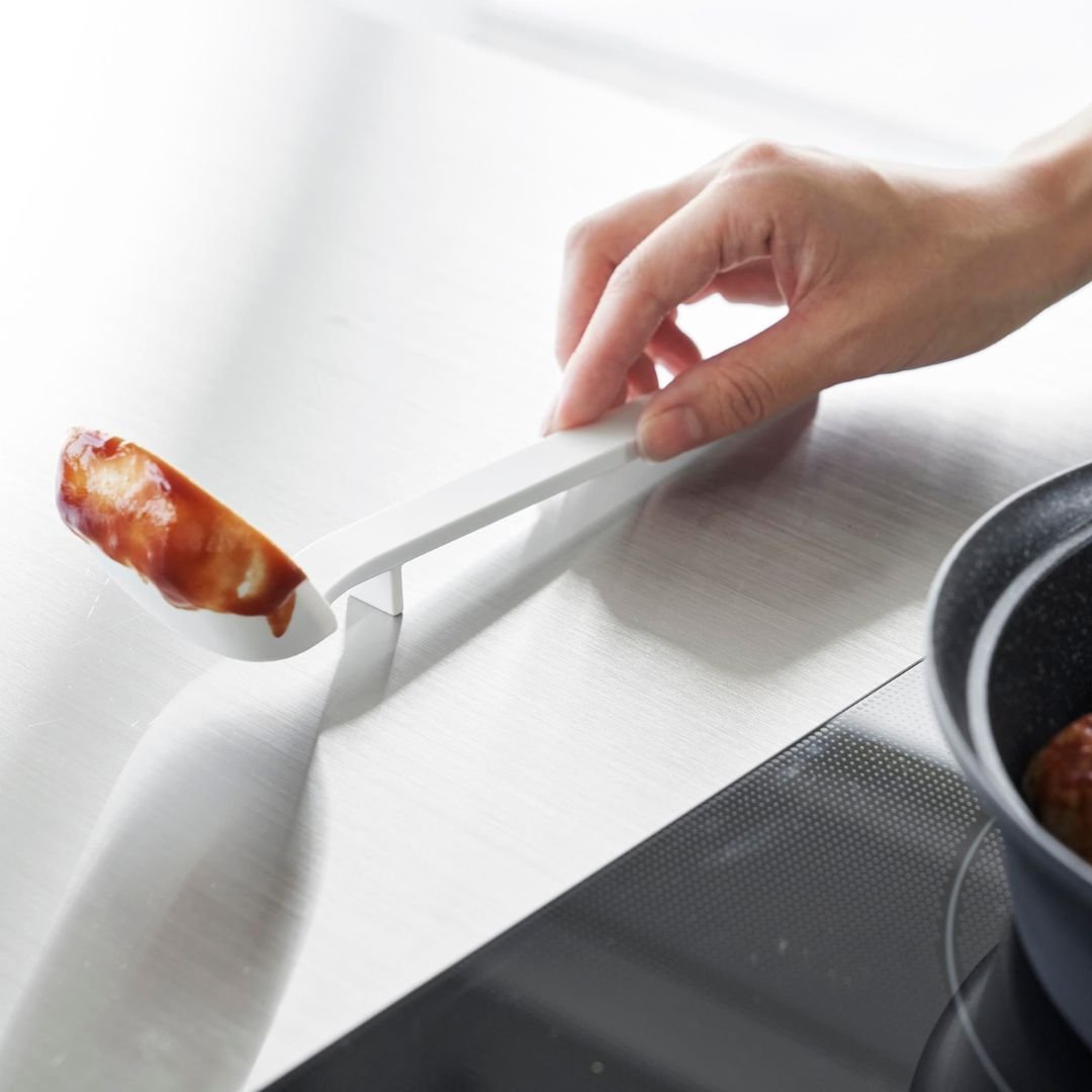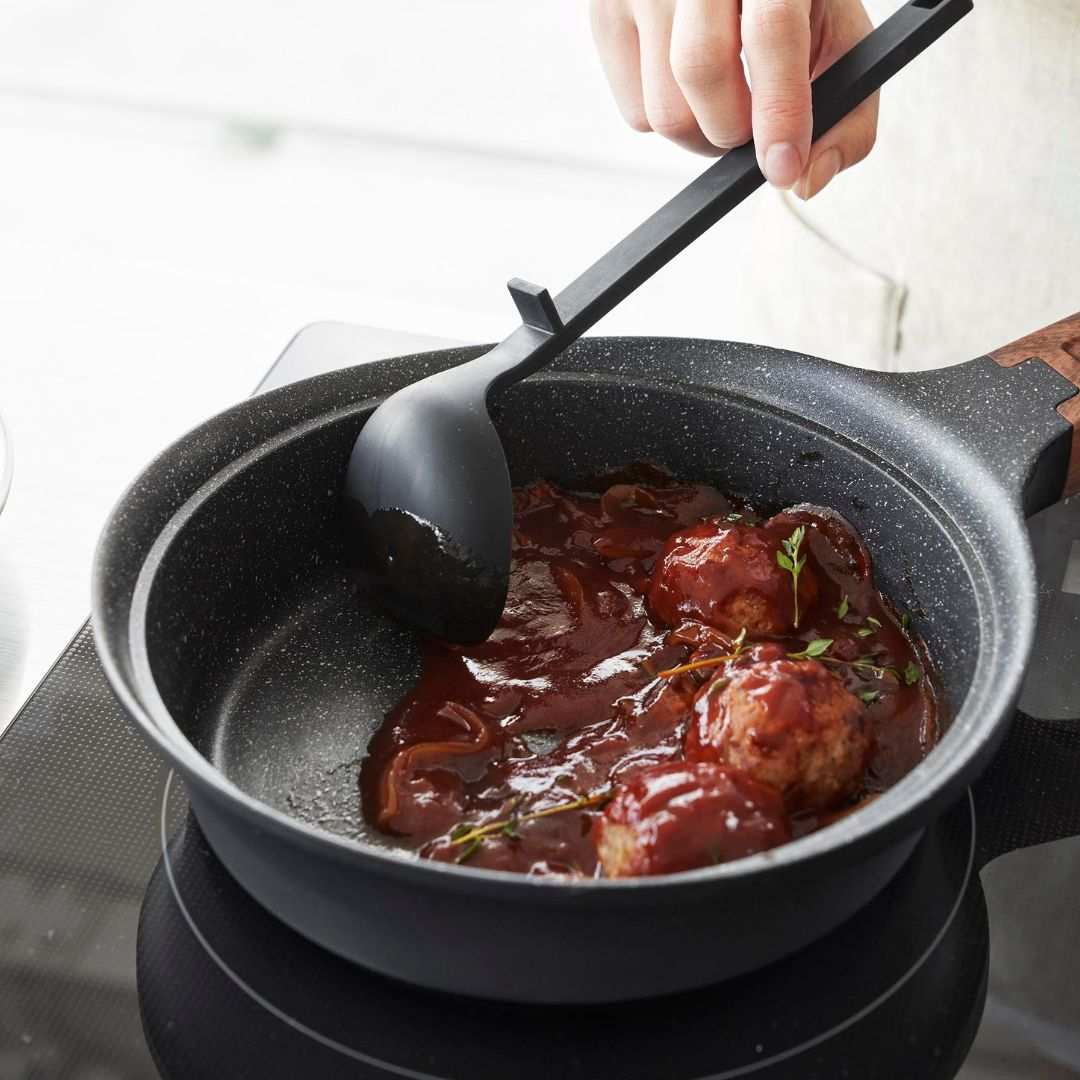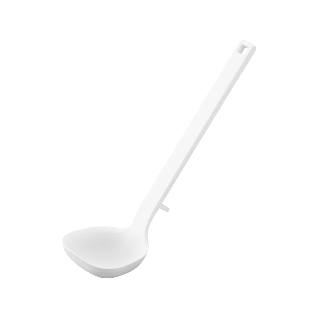 使いやすくオシャレなシリコーンお玉 Sサイズ towerのシリコーンお玉に、ひと回り小さめのSサイズが登場しました。お料理の際、キッチンツールはなくてはならない存在ですが、使いやすくオシャレなものを選びたいと思いませんか? towerのキッチンツールは機能性と見た目どちらも満足できるものばかりです。高いデザイン性とシリコン製で柔軟性の高さが魅力的なお玉は1度使ったら他のものが使えなくなるほどです。キッチンになじみやすい2つのカラー カラーはホワイトとブラックの2種類をご用意しています。どちらもマットな質感でキッチンをオシャレなイメージに。キッチンになじみやすいモノトーンカラーなので、他のキッチングッズやキッチン家電と色を統一することで、おしゃれな空間を演出可能です。アクセントカラーとして取り入れるのも◎。注ぎやすい仕様 素材は柔軟性の高いシリコン素材。お鍋やフライパン、ボウルなどを傷つける心配がないので安心してお使いいただけます。シチューなどをよそう時、お鍋の端にフィットするためよそいやすいのが特徴。お鍋の中に残すことなく全て注ぎきることができるのはうれしいポイント。また、お玉の先端部分に丸みがあるため、どちら側からも注ぎやすくなっています。もちろん、シリコン製なので香りの強い料理でもニオイが付く心配がありません。目盛り付きで便利 調味料を計る時、計量スプーンを使う方が多いと思います。でも、わざわざ用意したり、洗い物が増えるのは面倒ですよね? towerのシリコンお玉なら、30ccと15ccが計れる目盛りが付いているので便利。わざわざ計量スプーンを用意する必要がありません。調味料を入れてそのままお鍋に注げるので、調理の効率アップに役立ちます。調理台の上にそのまま置ける お鍋の中をかき混ぜた後などお玉を置いておきたい時、お皿などを用意しなくてはなりません。でも、towerのシリコンお玉ならその必要はナシ。先端部分が浮くよう作られているので、調理台などの上にそのまま置いておくことができます。直置きにならないのでの衛生的にも安心でき、洗い物の節に役立ちそうです。お料理によって使い分けられるよう、通常サイズと揃えて使うのもおすすめです。