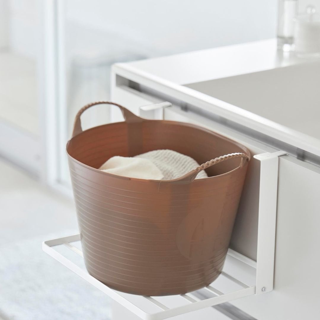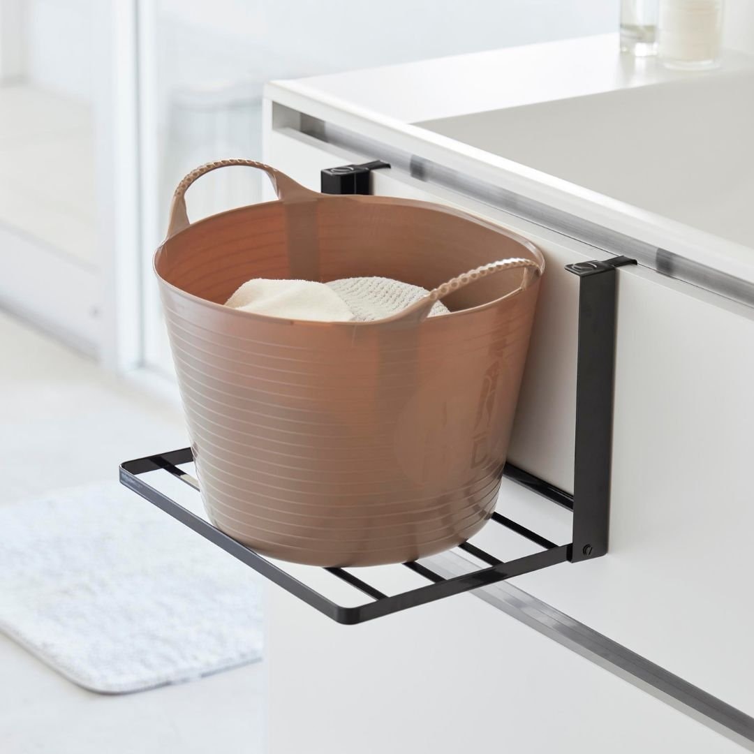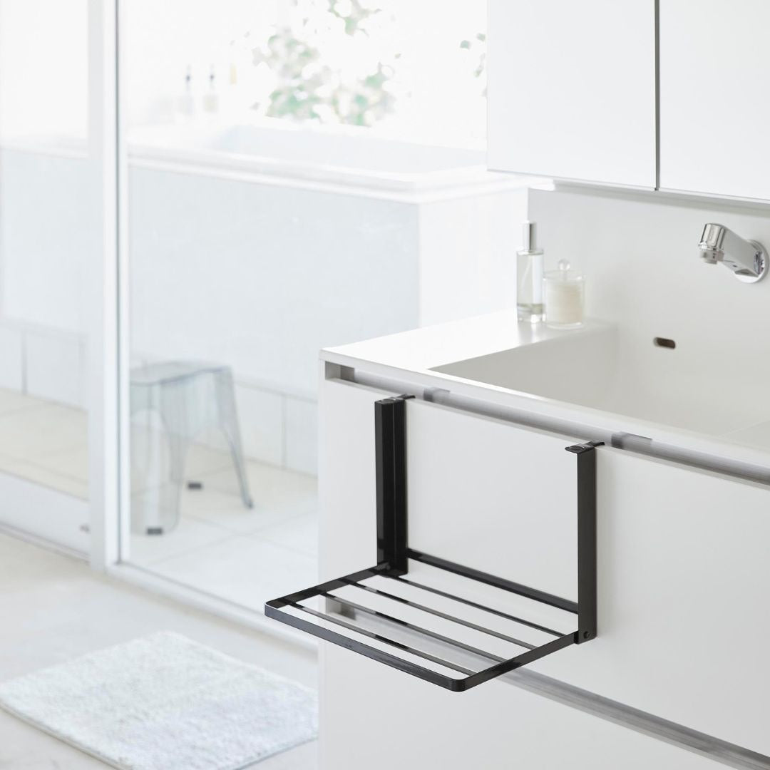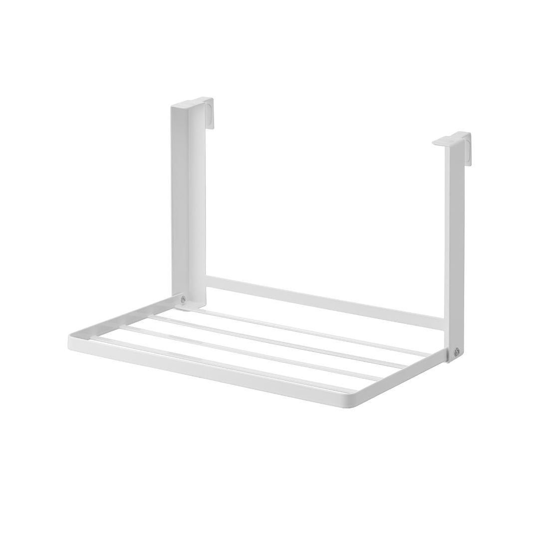 シンプルモダンなデザインの折り畳みラック 洗面台の扉や引き出し上部に引っ掛けるだけで設置できる折り畳み棚です。使わないときは折り畳んでスリムに収納できるので、狭いランドリールームや洗面所でも場所を取らず、空間を有効活用。棚が欲しいけどスペースがなくて付けられないと諦めていた場所に、必要な時にだけ使える折り畳みのラックです。洗濯カゴや洗剤置きにも使う事ができますよ。デザインもシンプルモダンで見た目もバッチリです♪ どんなお部屋にもマッチする、2色のカラーバリエーション カラーは、明るい印象のホワイト、スタイリッシュなブラックをご用意しました。どのお家の空間にもなじみやすいシンプルなモノトーンカラーです。洗面所や戸棚の色などに合わせてお好みのカラーをお選びください。洗面扉に着替えやタオル置きが設置できる 洗面扉に設置しておけば、お風呂上がりの着替えやタオルなどもサッと開いて置くことができます。耐荷重は2kgあるので、ランドリーバスケットの一時置きとしても。見た目もオシャレなので雰囲気を大事にする方にもおすすめです。畳めば奥行4cm、邪魔にならないスリム設計 通常時は棚として大活躍しますが、使わない時には畳むことが出来ます。 畳んだ時の奥行きはわずか4cmのスリム設計。使う時だけ引き出せばいいので狭いスペースを有効活用できますね。 使わない時は畳むことでスペースができ動線確保もでき快適です。畳んだらマグネットで固定 収納時は上部のマグネットでしっかり固定できるので、勝手に開いてしまう心配もありません。開く際は途中で手を離さず、完全に開くまで手を添えてください。