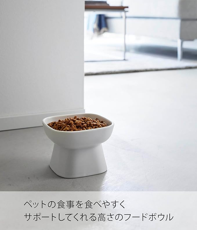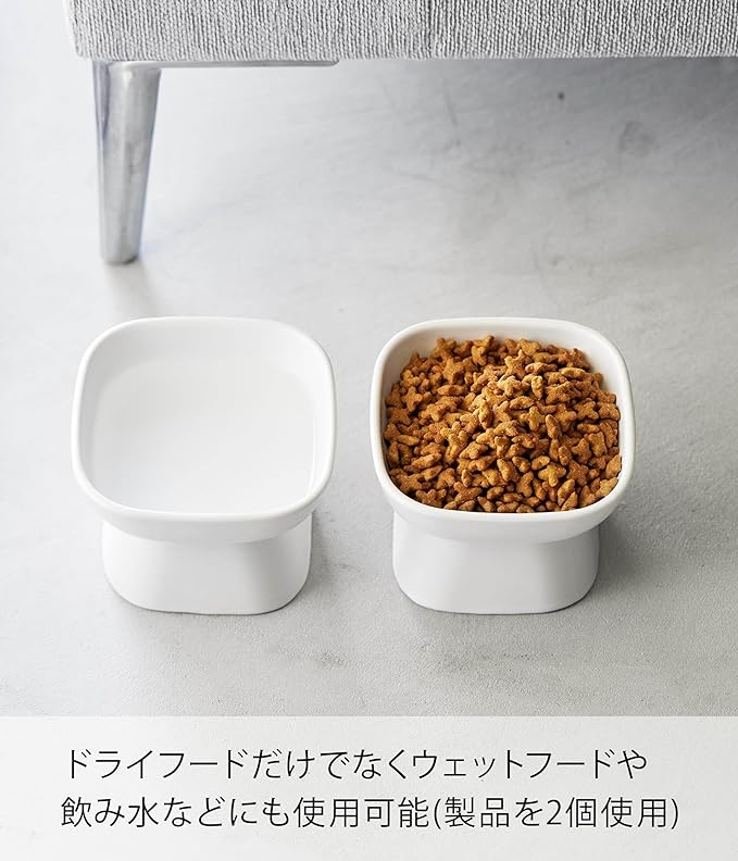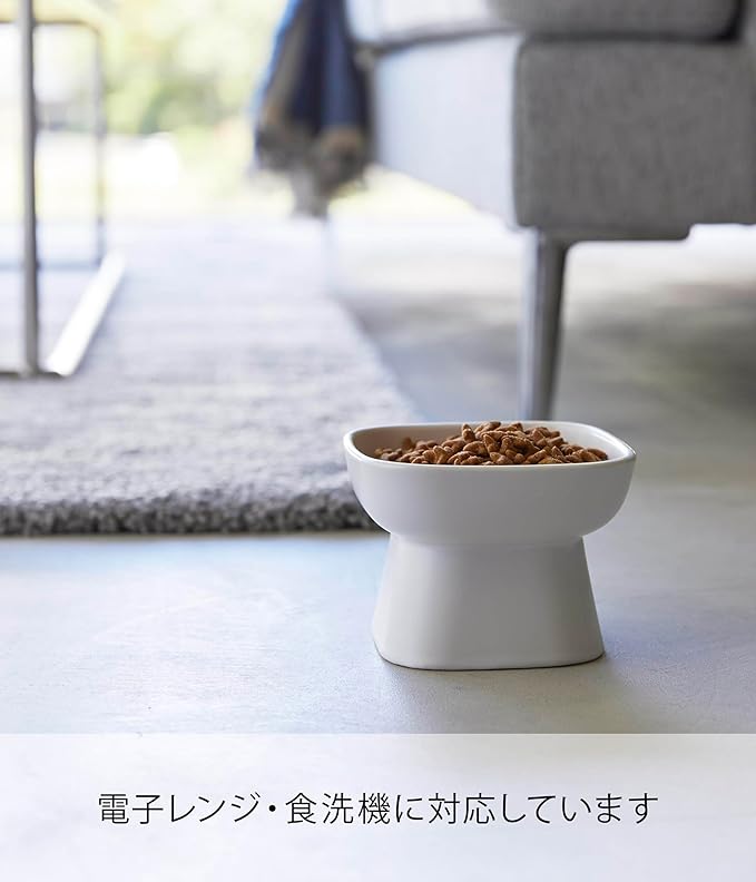 食事を食べやすくサポート。 たっぷり入って安定感も◎ ペットの食事中の首や腰の負担を軽減。食事を食べやすくサポートしてくれる高さのあるフードボウルです。ご飯や飲み水、ウェットフードなどペットが口にするあらゆるものにお使いいただけます。余計なくぼみや突起のない洗いやすい構造です。リビングにもなじみやすい、2色のカラーバリエーション カラーは、明るい印象のホワイトと、スタイリッシュなブラックをご用意しました。どんなリビングインテリアやキッチンにも合わせやすいシンプルなモノトーンカラー。お好みに合わせてカラーをお選びください。ペットの体だっていたわりたい。 食器を変える思いやり ペットがフードを食べやすくなる高さのあるフードボウルは、食事中にかかる首や腰への負担を軽減します。人間も前かがみになると体への負担が増すのだから、ペットの負担だってなるべく少なくしてあげたい。という飼い主さんの気持ちにお応えします。2つそろえて水とフードで分けたり、ペットごとにカラーを変えるのもおすすめです。電子レンジの使用OK。 自家製フードもチンして簡単 市販のペットフードだけでなく、たまには野菜などを使って手作りペットフードを作ることも。電子レンジの使用ができるので、ボウルに食材を入れてそのままレンジでチン。 移し替えの手間がかからず、洗い物が最小限で済みます。陶器製だから食洗機も使えます。大型のペットには高さ11.5cmのトールタイプも 斜めの角度がついた、高さ11.5cmのトールサイズのご用意もあります。大型のペットには『食べやすい高さ陶器ペットフードボウル 斜めトール』もおすすめ。※こちらは高さ8cmの『食べやすい高さ陶器ペットフードボウル』の商品ページです。『食べやすい高さ陶器ペットフードボウル 斜めトール』は別ページにてご確認いただけます。