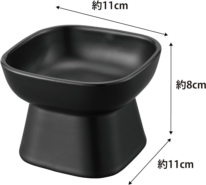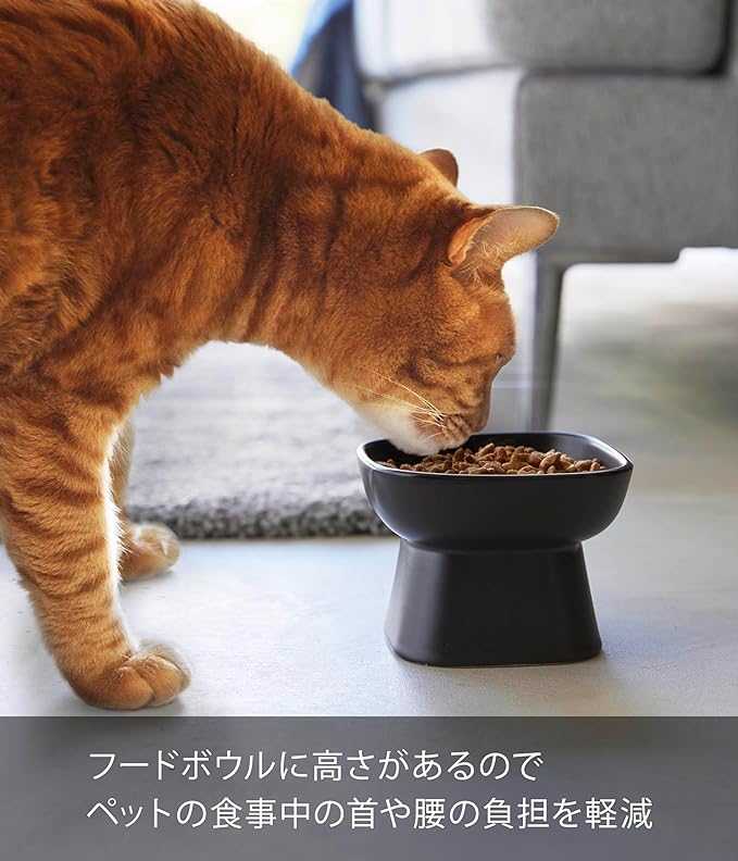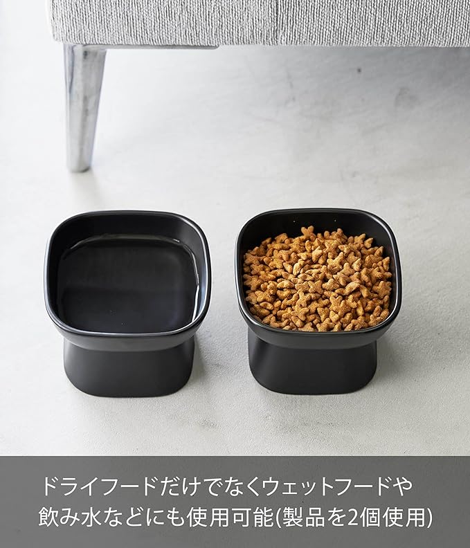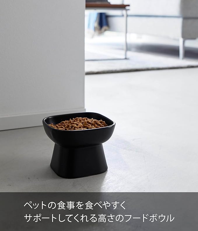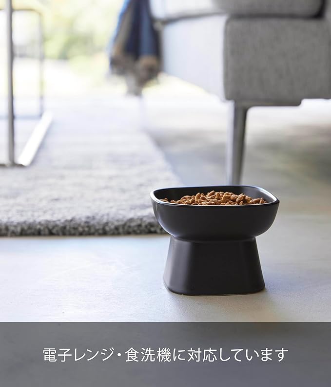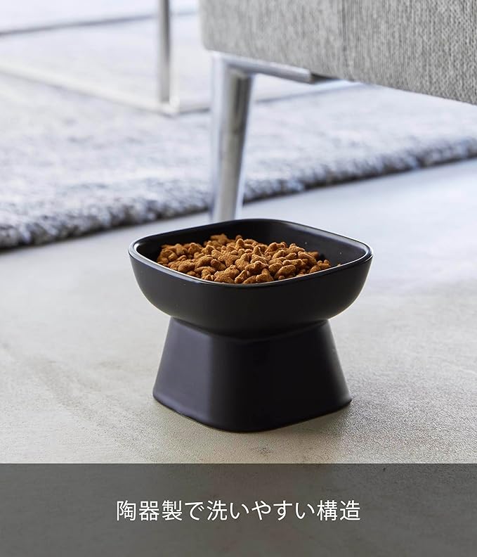 tower 食べやすい高さ 陶器 ペットフードボウル ブラック エサ入れ 水入れ 食洗機対応 電子レンジ対応