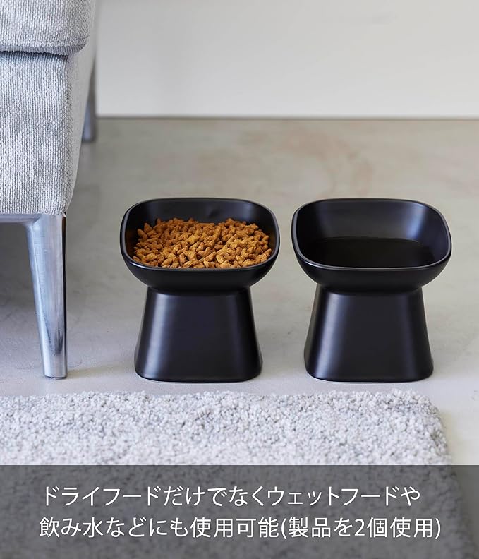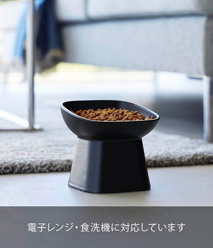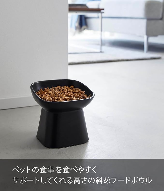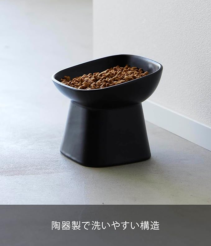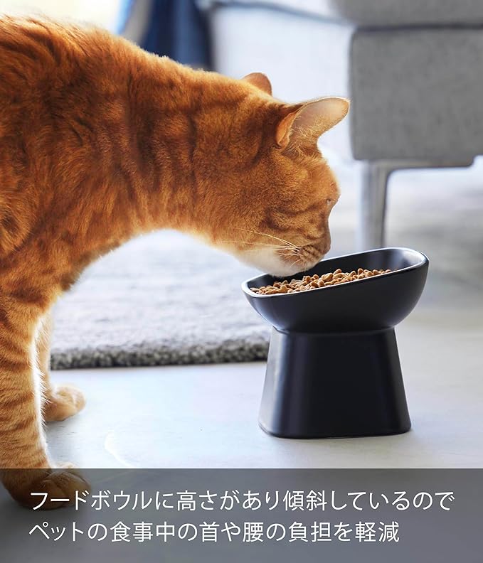 tower 食べやすい高さ 陶器 ペットフードボウル 斜めトール ブラック エサ入れ 水入れ 食洗機対応 電子レンジ対応