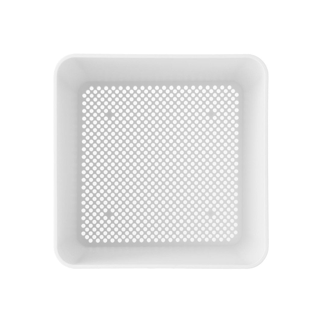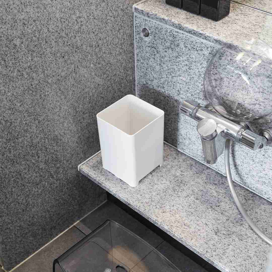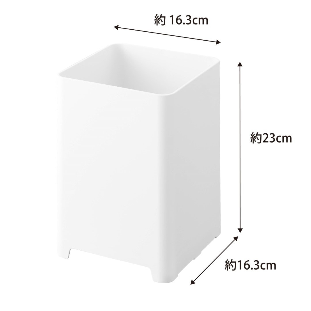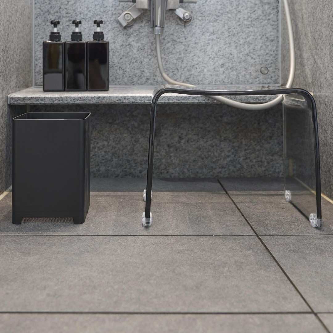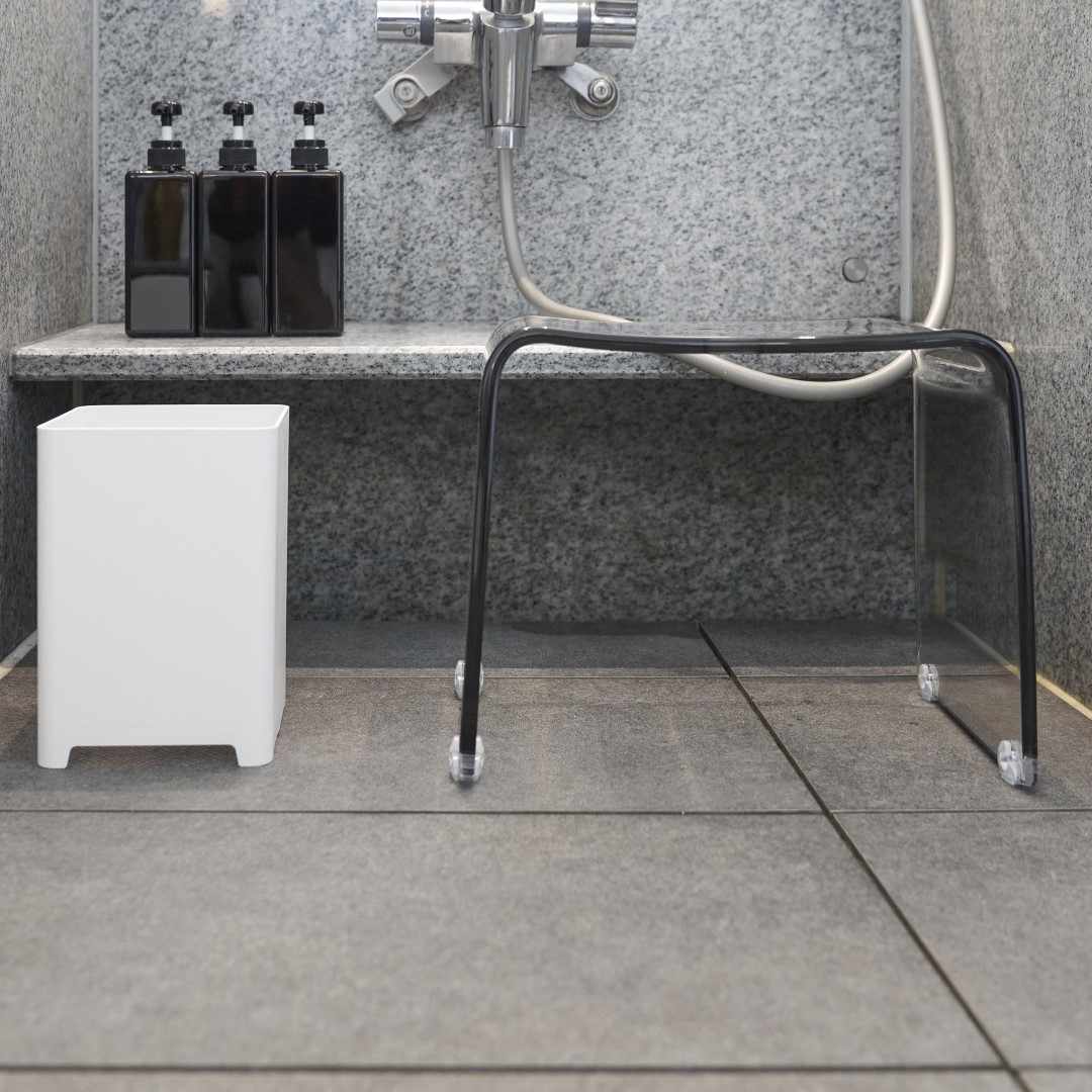存在感の少ないシンプルさが光るゴミ箱底面に水切り穴が付いた浴室内用のゴミ箱です。シンプルなスクエア型は棚上の角にフィットし、生活感を抑えたスタイリッシュなデザインです。コンパクトな形状ながら容量は5Lとたっぷりサイズで、使用済みのシャンプーボトルなどもすっぽり収まります。ご家庭にも大浴場でもぴったりな、2色のカラーバリエーションカラーは、清潔感のあるホワイト、シックなブラックをご用意しました。ご家庭でも、銭湯などの大浴場でもなじみやすいシンプルなモノトーンカラーです。バスルームの雰囲気や棚上の材質などに合わせてお好みのカラーをお選びください。奥行の狭い場所でも設置が◎両側面は手前・奥・真ん中と3点で支える仕様となっているため、ゴミ箱より奥行きの浅い棚上に置いても落下しにくい設計です。置く場所の選択肢が広がるのでゴミ箱を邪魔に感じることなく、床面のスペースを圧迫しません。水はけが良い目の細かい水抜き穴底面には水抜き用の穴が細かく開いているからゴミ箱内に水が溜まらず衛生的です。目が細かいため小さなゴミもゴミ箱内でしっかりとキャッチし、水抜き穴から外に逃がしにくいのがポイント。自宅用にも、大浴場にもぴったりなゴミ箱ご家庭のバスルームはもちろん、ホテルや旅館、銭湯などの大浴場にもおすすめです。大浴場なら洗い場一つひとつにゴミ箱を設置することで、利用者が浴場内にゴミを放置せずにきちんとゴミ箱に捨ててくれるようになります。