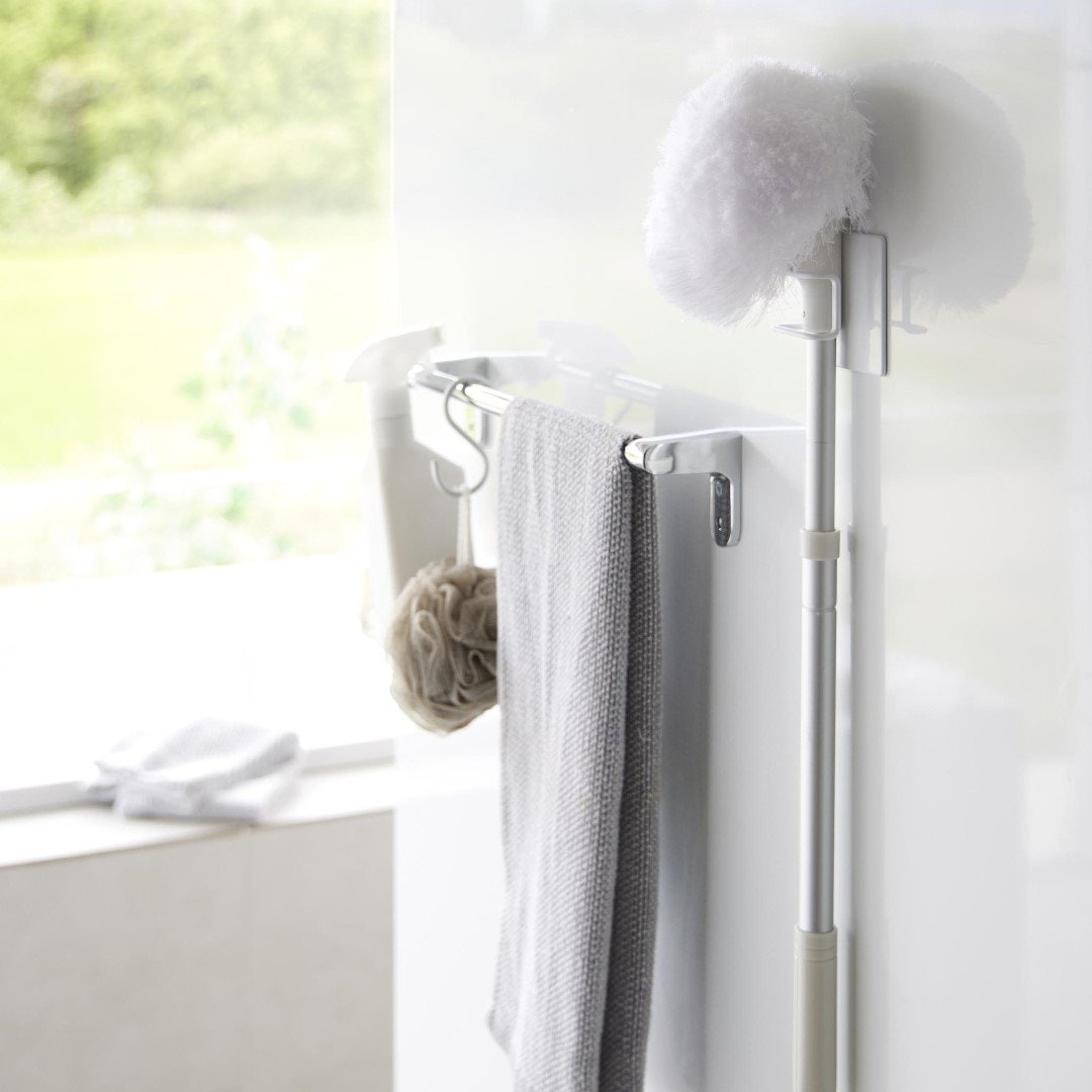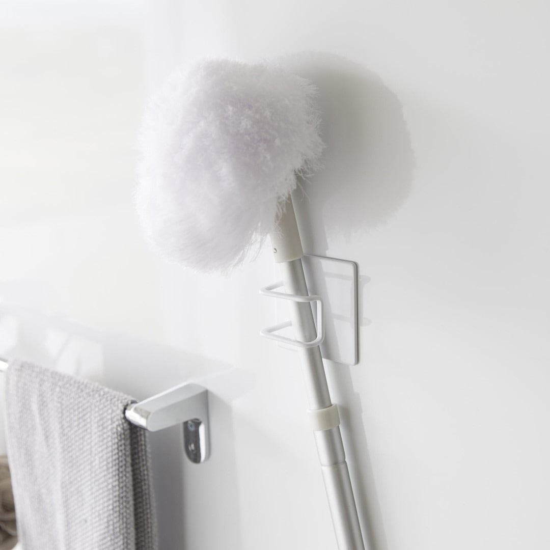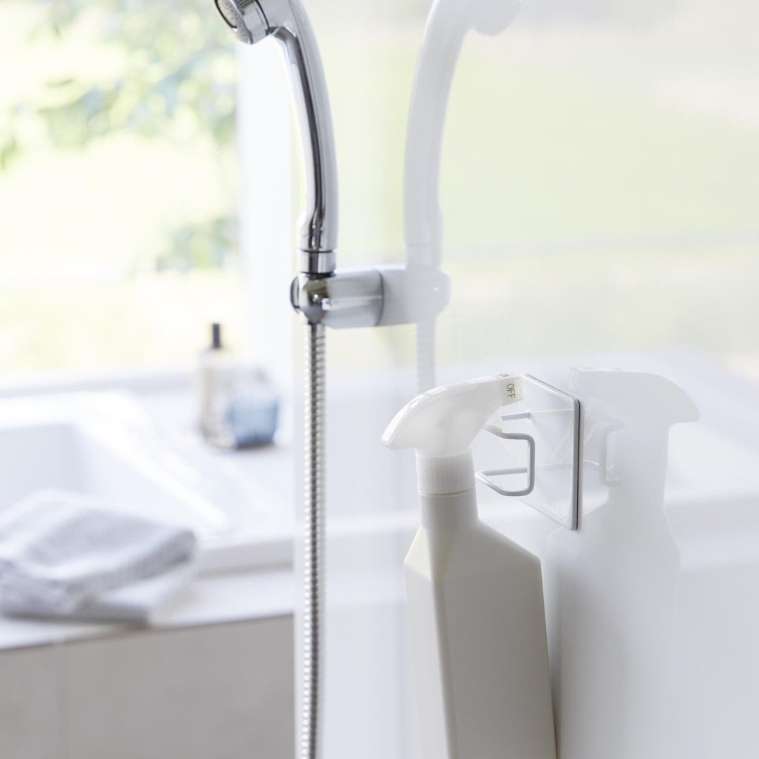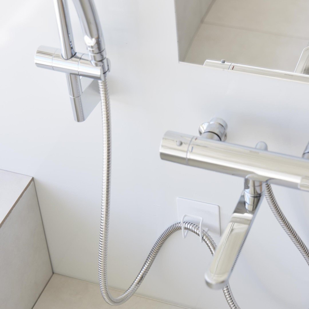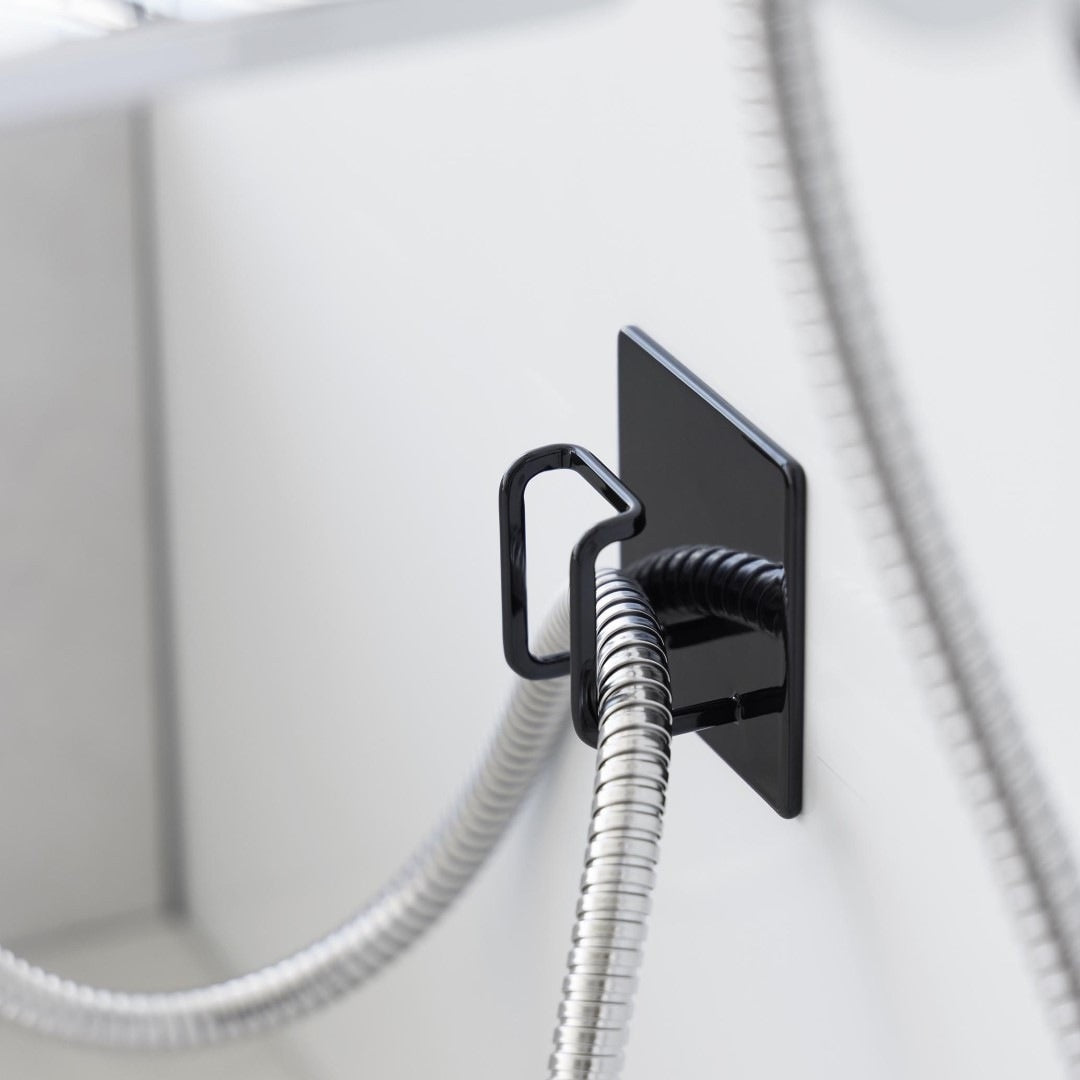 安全・衛生的。 ホースを床に垂らさないシャワーホースを浮かせて収納できるホースフックです。入浴中、ホースで足を引っ掛ける心配のあるお子様の転倒防止アイテムとしても便利。マグネットで簡単に取り付けができ、フックの向きを横にすればスプレーなどを引っ掛けて使うこともできます。バスルームの雰囲気に合わせて選べる、2色のカラーバリエーションカラーは、明るい印象のホワイト、スタイリッシュなブラックをご用意しました。どんなタイプの浴室にもなじむシンプルなモノトーンカラーです。壁や床、バスチェアなどのバス小物などに合わせてお好みのカラーをお選びください。掃除アイテムの引っ掛け収納にもフックを横向きに取り付ければ、バスモップやスプレー類の収納としてもご使用いただけます。モップ部がフックに引っ掛かり浮かせて収納が可能です。掃除が終われば浴室掃除アイテムも浮かせて、通気性や水切れよく収納。シャワーホースを浮かせてバスルーム内の乾燥を素早く床面にシャワーホースが触れている状態だと床面の乾燥がスムーズに行えず水分が残っている状態が長く続いてしまいます。バスルームの水分がいつまでも残り続けるとヌメリ汚れやカビの原因に繋がることも。お風呂に入ったあとはシャワーホースが床に触れないようにするのが◎。簡単。 マグネットでピタッと密着マグネット対応の壁面に本体をピタッと密着させれば設置が完了です。もちろん貼り直し可能なので、使い続けていくうちに最適な定位置が見つかればその度に移動はOK。壁面を傷つけずに固定できるので、新築や賃貸のお家でも使いやすい仕様です。