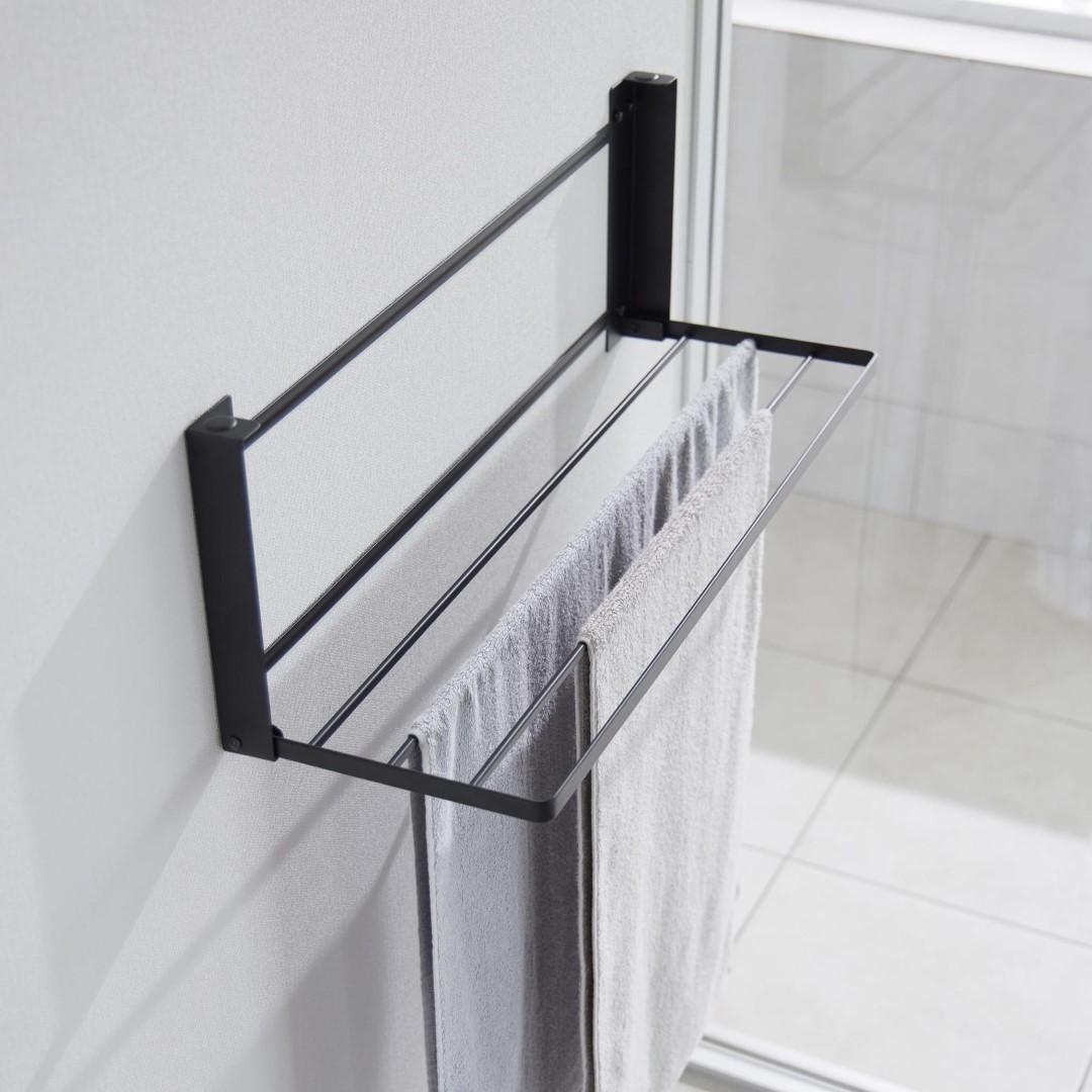 tower ウォール折り畳みバスタオルラック石こうボード壁対応