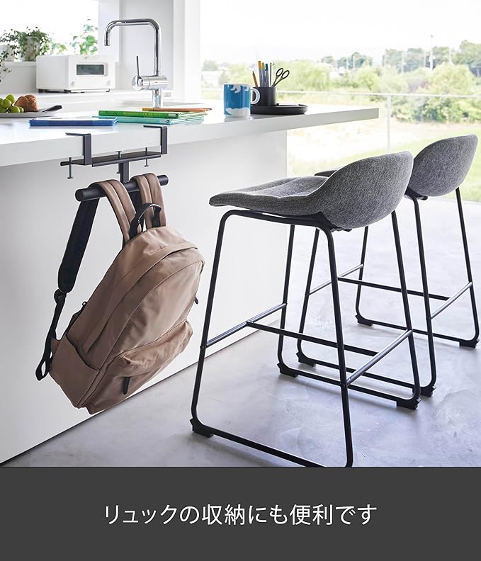 tower デスク横 ランドセル&リュックハンガー ブラック デスク キッチンカウンター ランドセル収納 差し込み取り付け 簡単設置