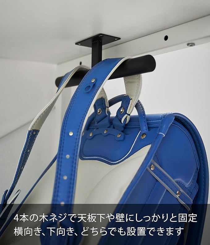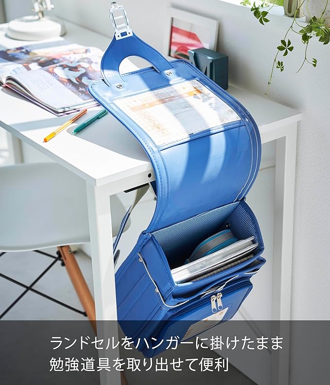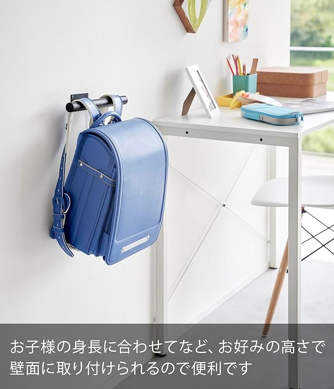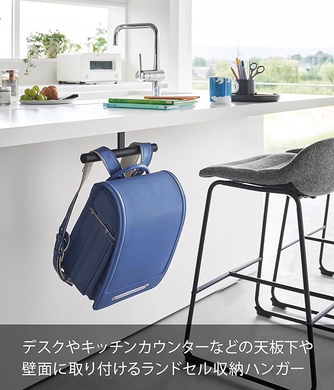 デスクやキッチンカウンターの天板下や壁に木ネジでしっかりと取り付けできる便利なランドセル・リュック収納ハンガー。勉強する場所に合わせて、デスクやキッチンカウンター、壁などにランドセル収納を追加することができます。リュックの収納にも便利です。壁に取り付けて、お好みの高さに収納することができます。勉強机やキッチンカウンターの天板下に直接取り付け。木ネジでしっかりと固定できます。ランドセルを掛けたまま勉強道具を取り出せて便利。キッチンカウンター天板の下に取り付ければ子供の宿題を見ながら家事ができて便利。