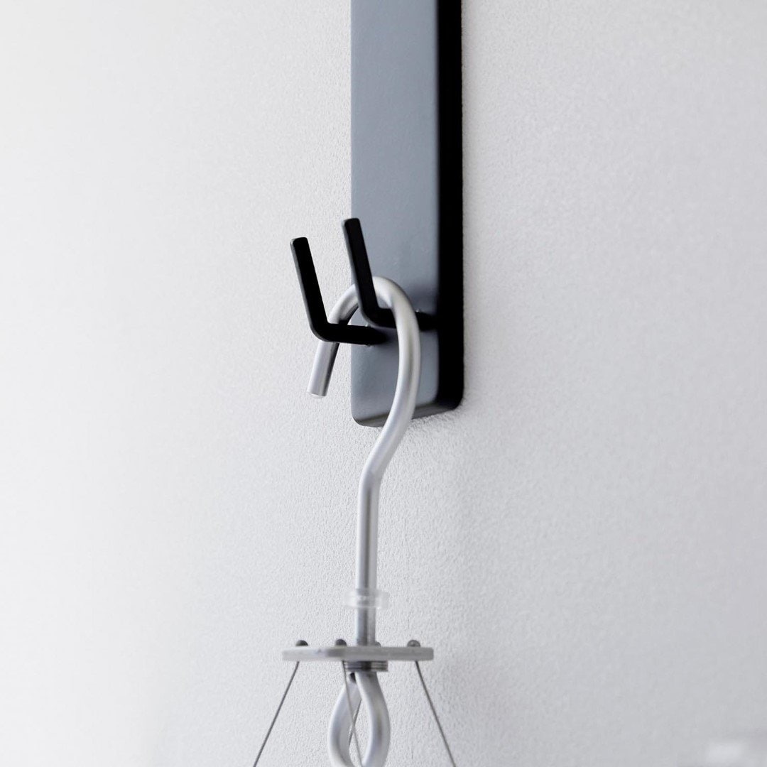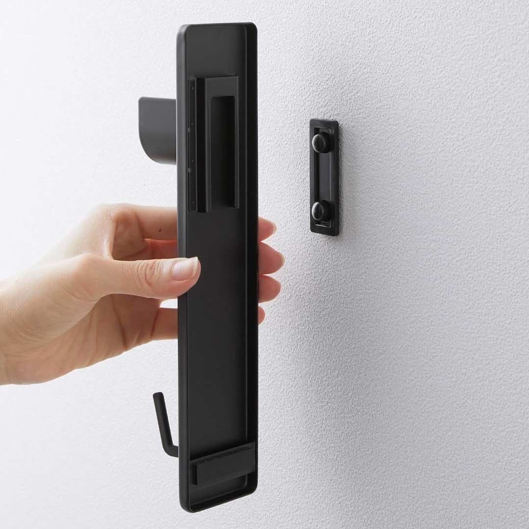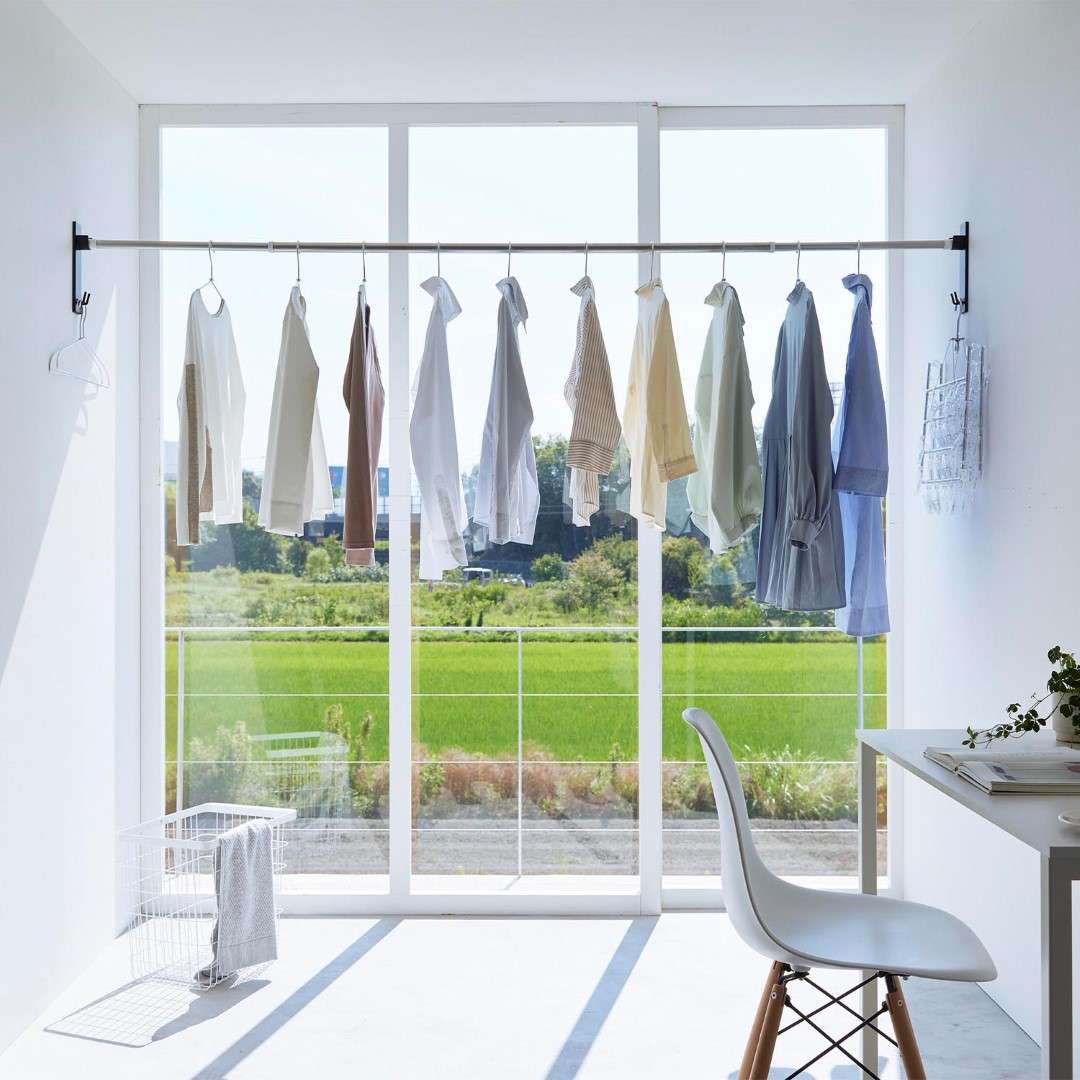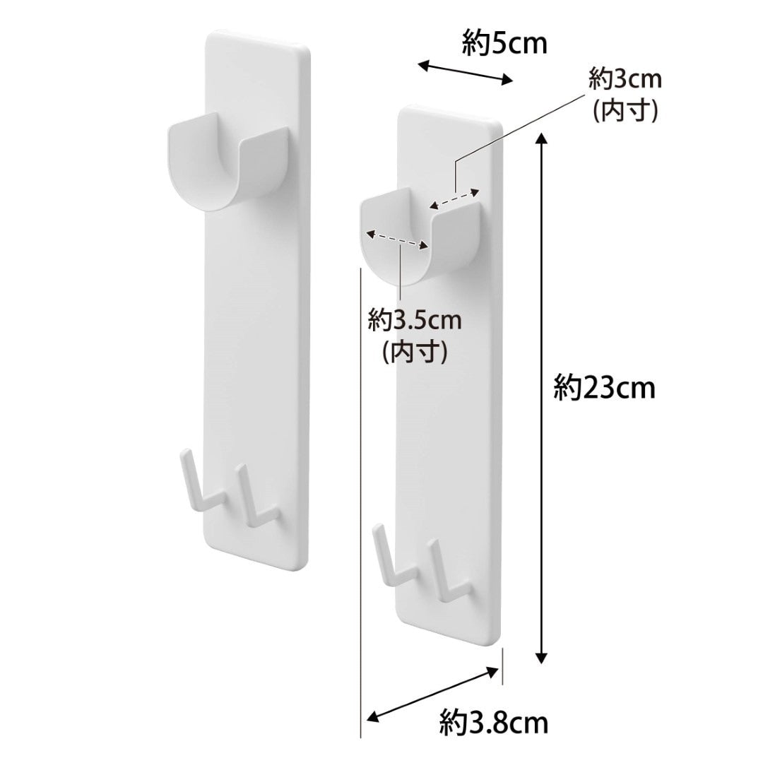 取り付け簡単。 家の中に物干しスペースを作れちゃう 部屋の中に室内干しをするスペースを簡単に増設できる、物干し竿ホルダーです。石こうボードピンを使うから取り付けはあっという間。洗濯物を干さないときには物干し竿を外しておけば見た目もスッキリとし動線の邪魔にもなりません。リビング空間にぴったりな2色のカラーバリエーション カラーは、明るい印象のホワイトと、スタイリッシュなブラックをご用意しました。どんなインテリアのトイレにも合わせやすいシンプルなモノトーンカラーです。壁紙の色などに合わせてなどお好きなカラーをお選びください。室内干しがしにくい季節にお役立ち 花粉や黄砂が気になる季節、外干しがしにくくなる梅雨は室内干しの機会が増えます。室内なら花粉や雨に困ることもないので安心して洗濯物の乾燥ができます。また冬場には乾燥対策にあえて室内干しをする家庭も多いのでは。ハンガー・ピンチハンガーを収納できるフック付き おすすめの設置場所は窓際です。部屋干しであっても太陽の陽気で窓際の方が効率よく乾きます。ホルダーの下部にはフックが付いており、使っていないハンガーやピンチハンガーの収納場所としてもご使用いただけます。※物干し竿は付属しておりません。壁の穴が目立ちにくい石こうボードピン取り付け 石こうボードピンで設置するので、取り外したときに壁の穴が目立ちにくいのがうれしいポイント。大きな力は必要なく、コインを使って指でピンをぐっと押し込むだけ。女性でも簡単に取り付けが完了します。付属の木ネジを使えば柱や板壁に取り付けることも可能です。