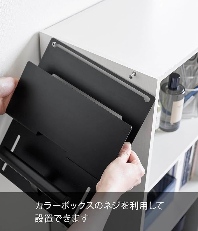 tower カラーボックス横 タブレット&ランドセルホルダー ブラック カラーボックスのネジを活用 タブレット収納