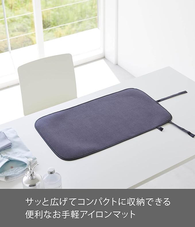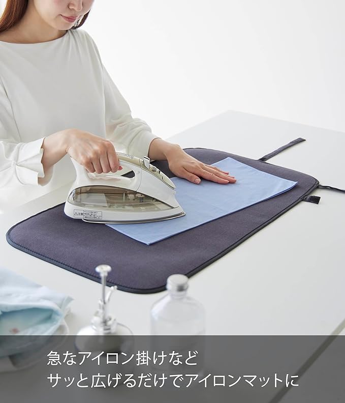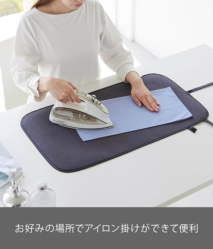 くるくる丸めてコンパクトに収納できる便利なお手軽アイロンマット。広げるとアイロン掛けしやすい大きな掛け面。お好みの場所でアイロン掛けしていただけます。クローゼットにぶら下げて収納できます。