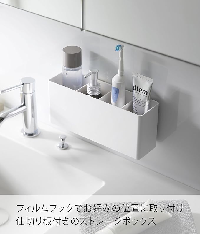 MIST フィルムフック ストレージボックス ワイド ホワイト 小物収納 フック付き バス 浴室収納 洗面 収納