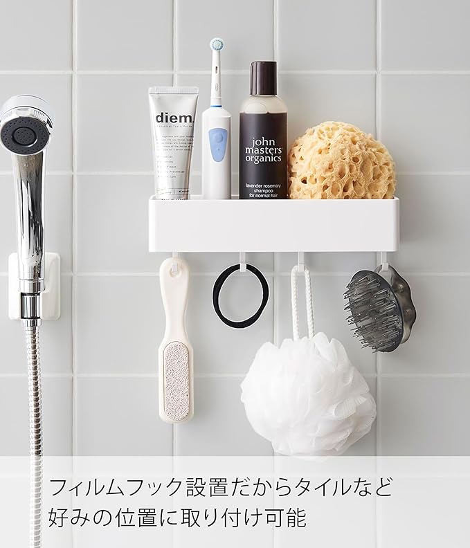 MIST フィルムフック ストレージラック ホワイト 小物収納 フック付き バス 浴室収納 洗面 収納