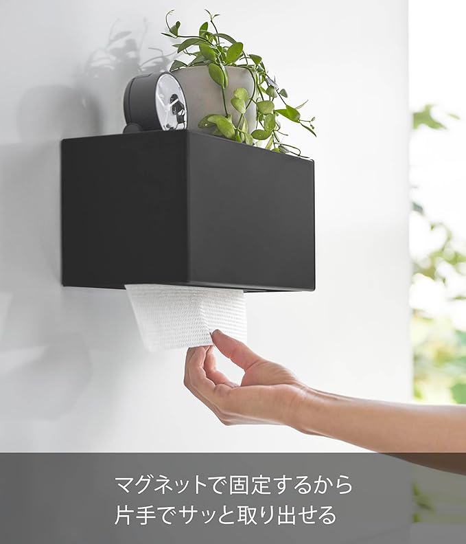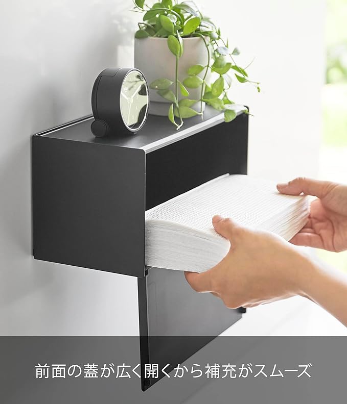 tower マグネット トレー付き ペーパータオル ディスペンサー ブラック ペーパータオルケース ペーパータオルホルダー 片手で取りやすい