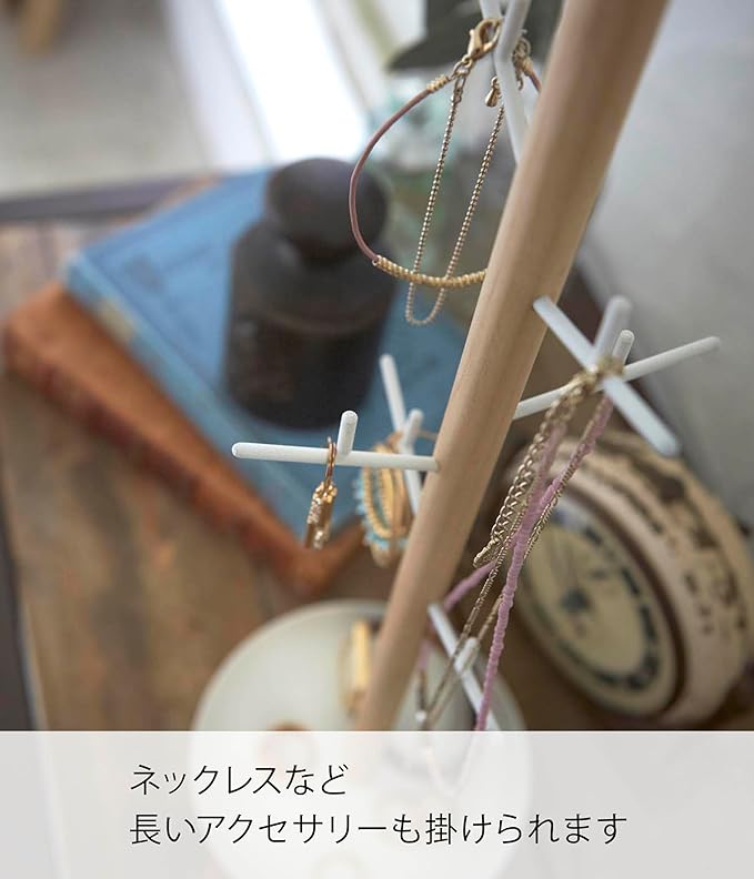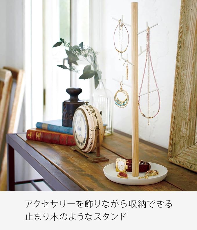 飾りながら収納できる、スチールと木の組み合わせが美しいアクセサリー収納です。木の形になったデザインが可愛く、シンプルなのでどんなお部屋にも馴染むデザインです。フックに掛けて取り出しやすい 引っ掛けて収納できるから、絡まりにくく取り出しもスムーズ。トレーは小物置きとしても スタンドの下はトレーになっているので時計や指輪も一緒に収納できます。
