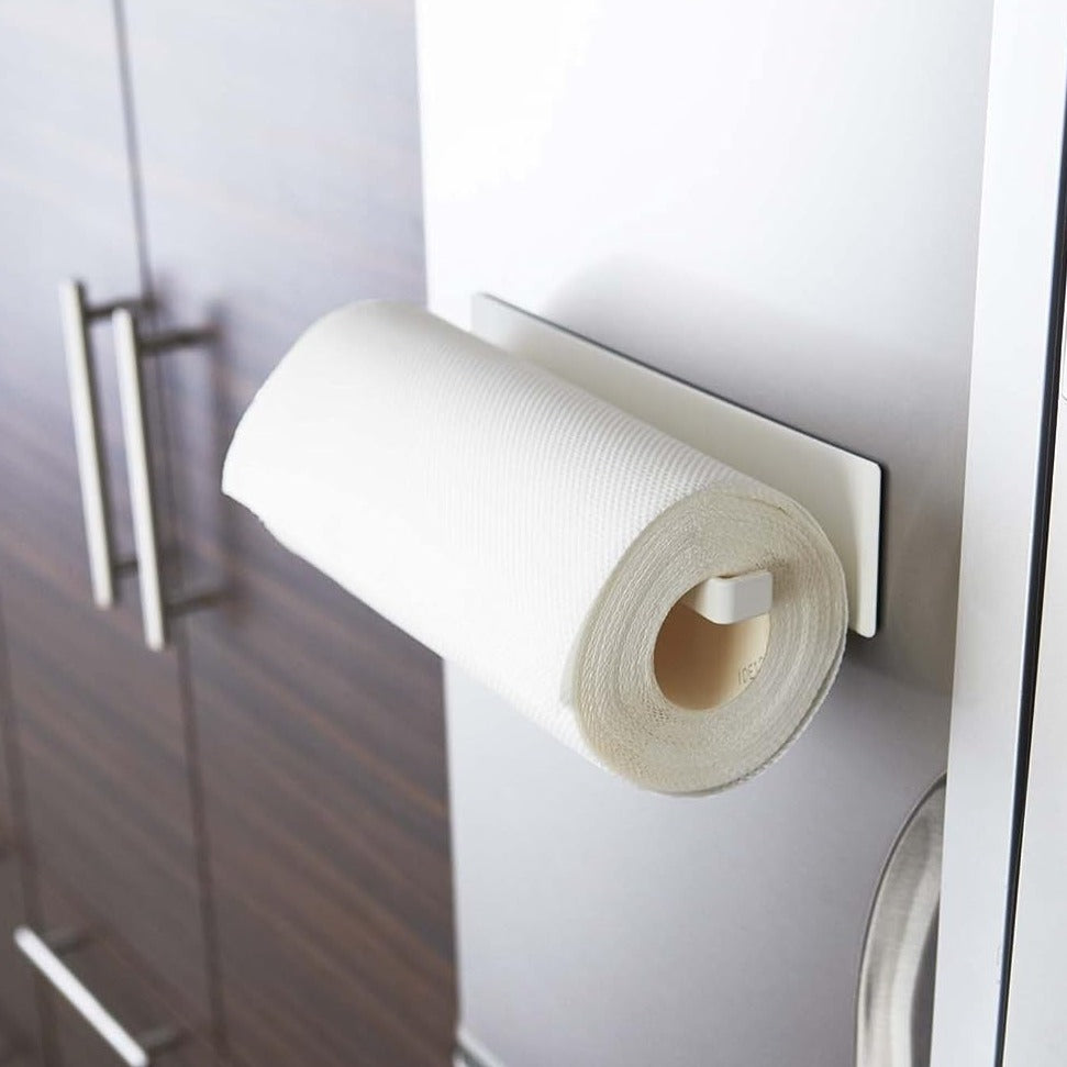 マグネットで簡単に取り付けられるキッチンペーパーホルダーです。縦向きでも横向きでも好きな方向に設置することができます。キッチンペーパーだけではなく、タオルや布巾をかけることも可能です。