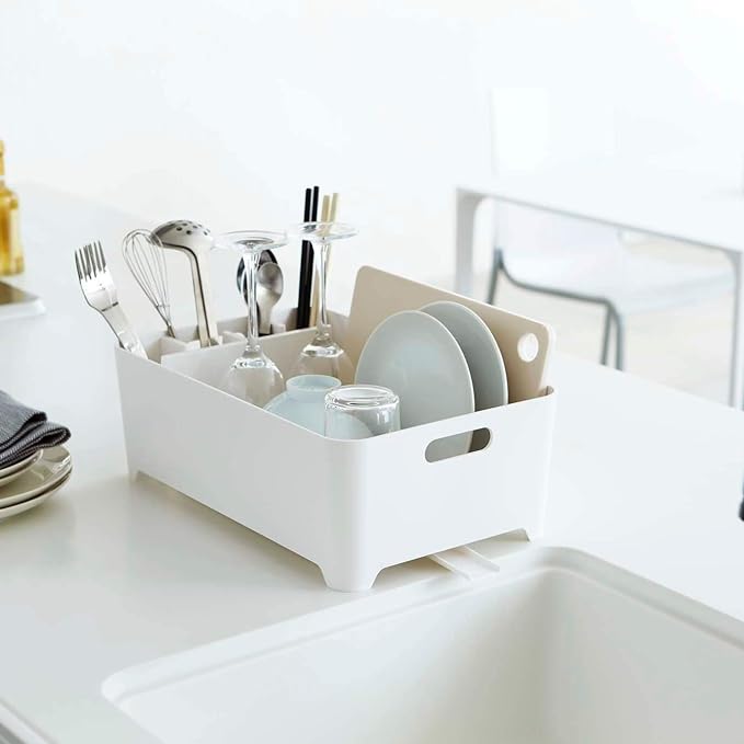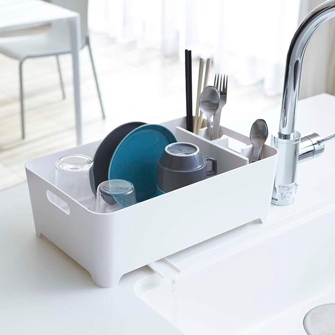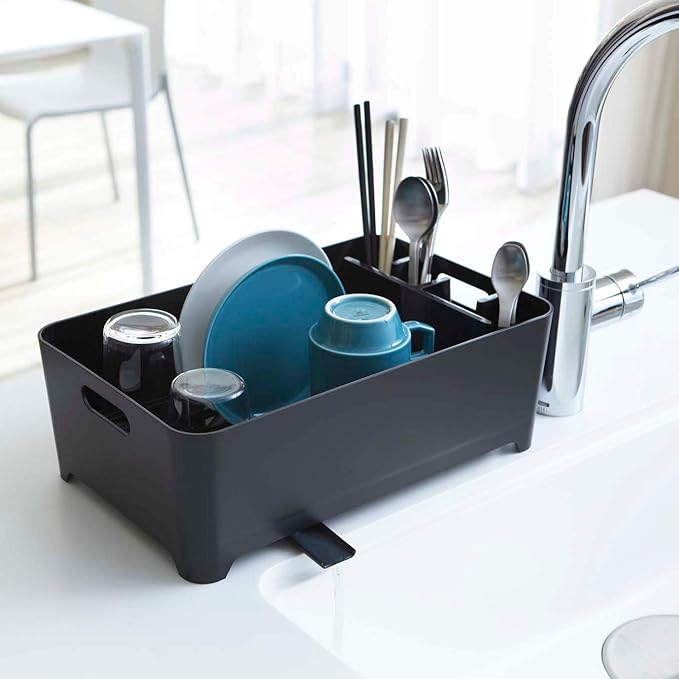 食器の水が直接シンクへ。レイアウトも自由自在。よく使う、グラス・カップ・茶碗・カトラリー・調理道具などをたっぷり収納。 菜箸・カトラリー・調理道具などを分別できる仕切り付き つけ置き洗いが可能 水止栓を使用すれば、食器のつけ置き洗いができるので節水にもなります。