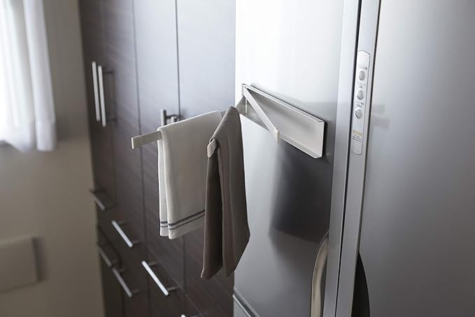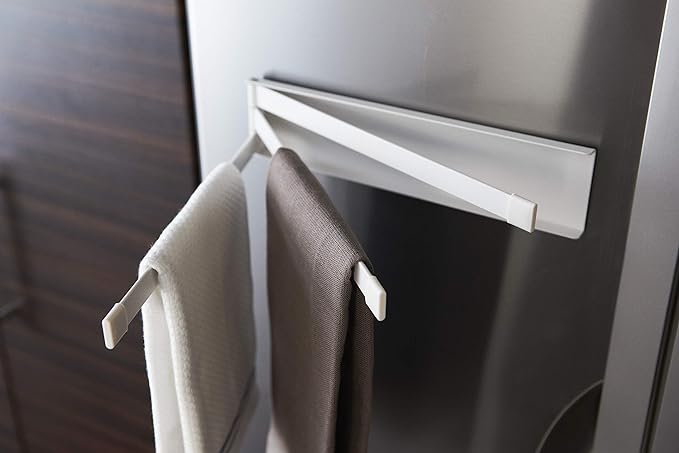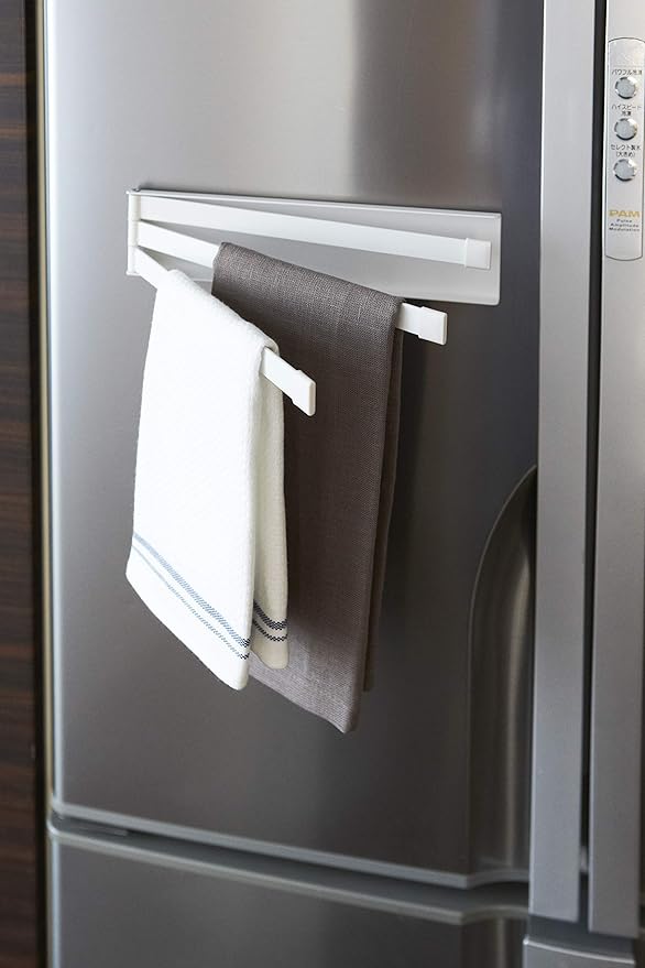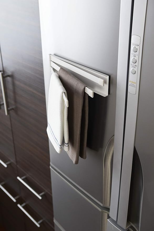 冷蔵庫の扉や側面にマグネットで簡単取り付けの布巾ハンガーです。使用しない時はスリムに収納でき、マグネットなので取外しも簡単。