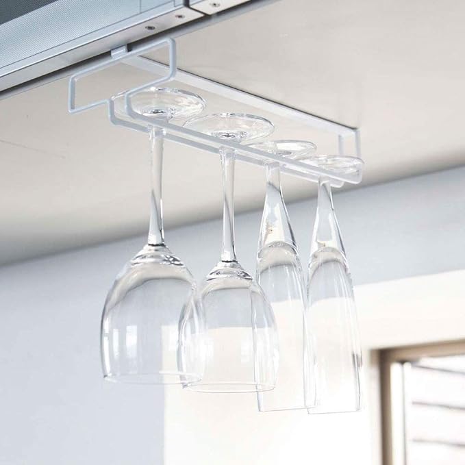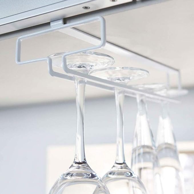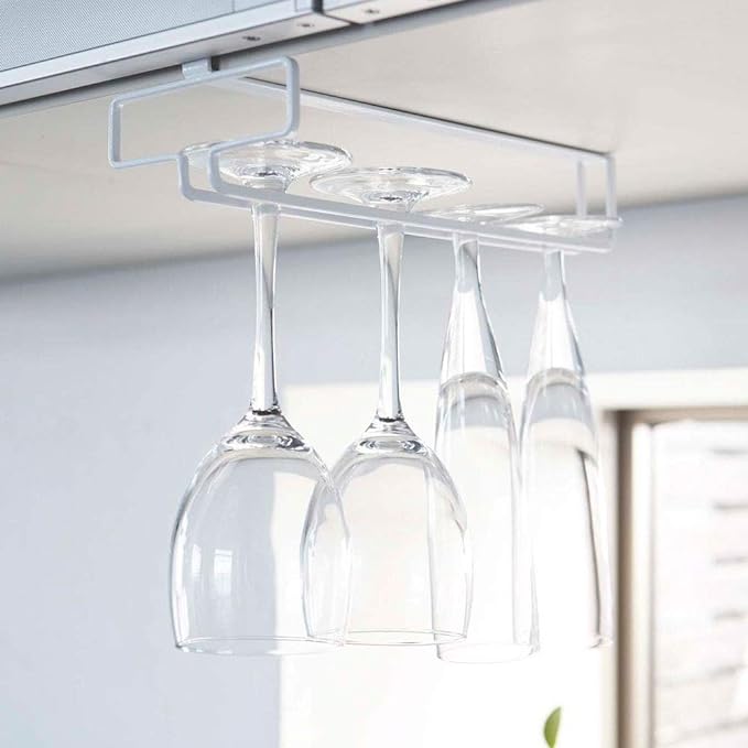 キッチン吊戸棚に取り付けるだけ。ワイングラスとシャンパングラスも収納可能。ワイングラスを簡単収納できます。ワイングラス・シャンパングラスの収納にピッタリのグラスホルダーです。