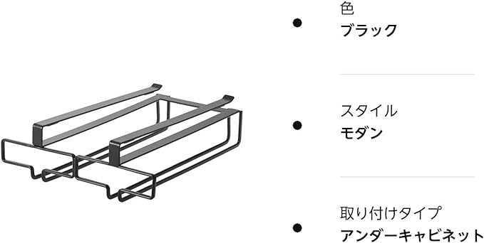 tower 戸棚下ワイングラスハンガー ダブル ブラック