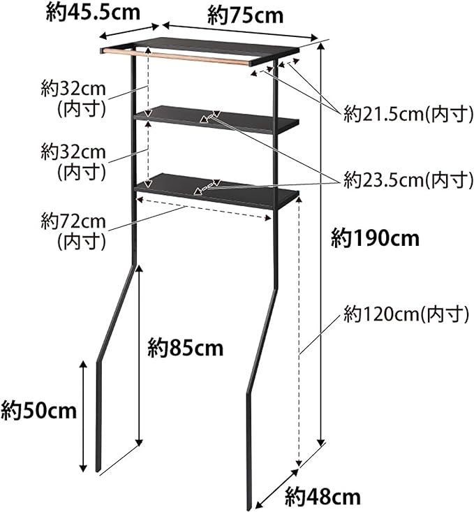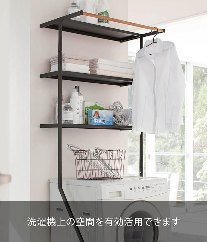 tower 立て掛け ランドリーシェルフ ブラック ランドリーラック ハンガーバー付き