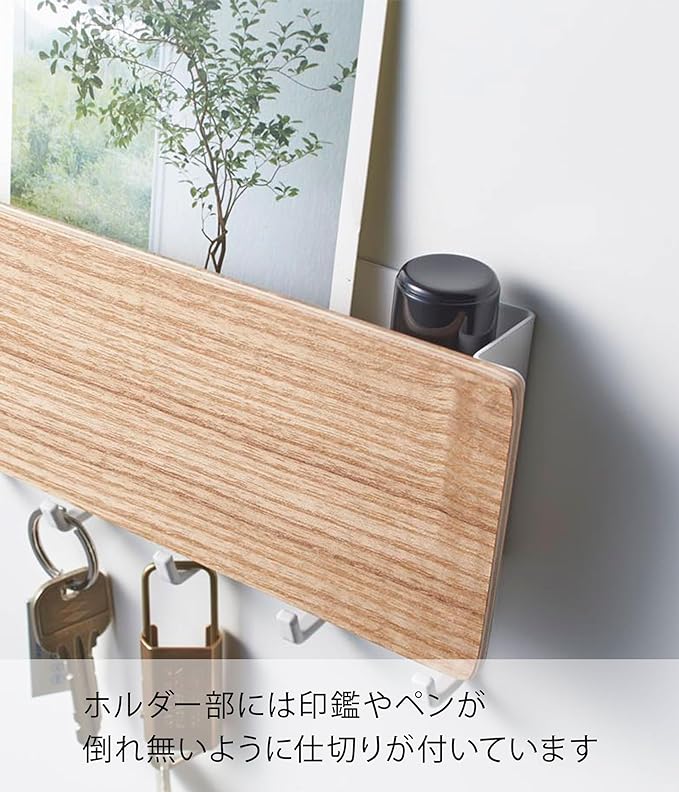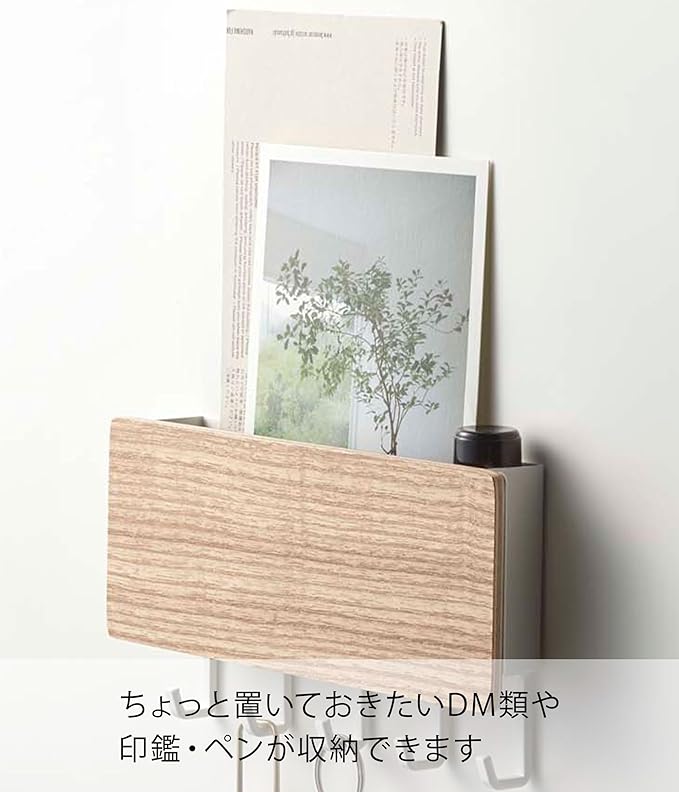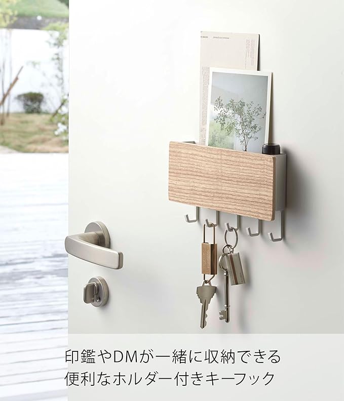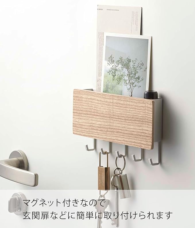 印鑑やDMが収納可能なマグネットキーフック。5つのフックで普段使う鍵類など一括収納。便利なホルダー機能付きキーフックです。