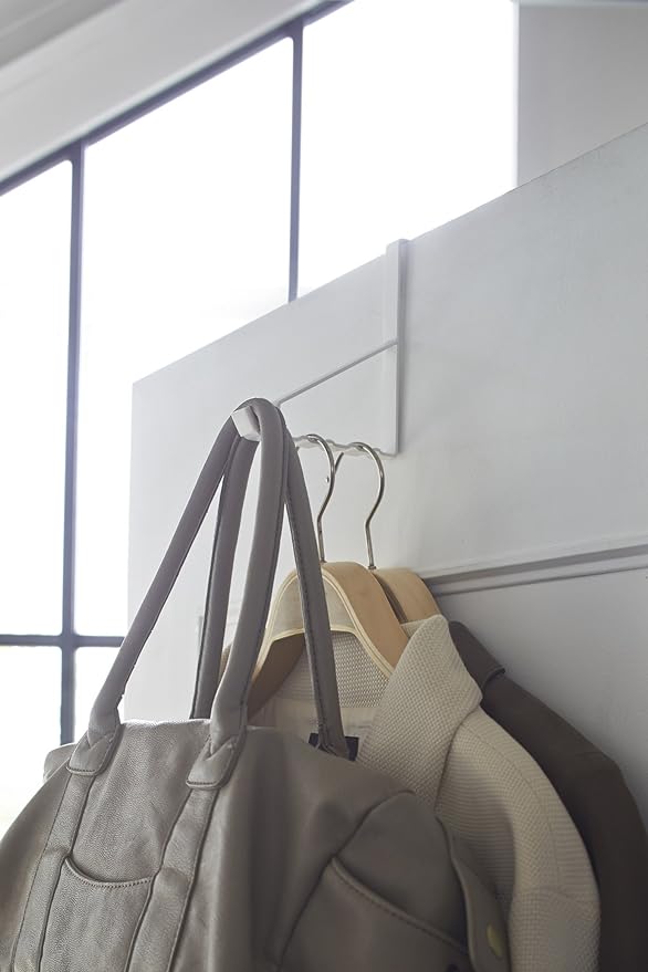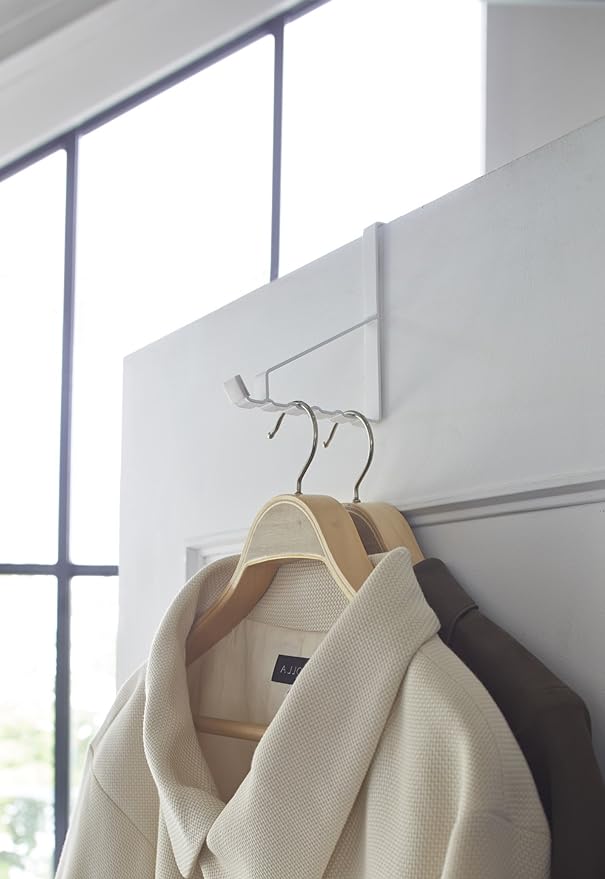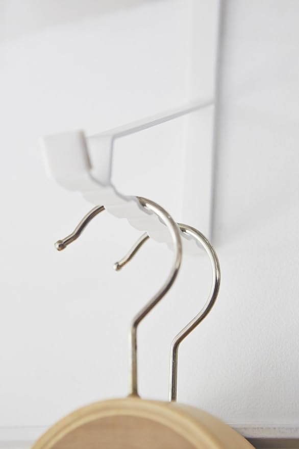 雨天時での室内干しにも便利なドアハンガー。引っ掛かりが6ヵ所あるのでハンガー同士が片寄りません。洗濯物の室内干しにも便利。先は滑りにくいシリコン素材になっているので帽子や洋服をそのまま掛けられます。