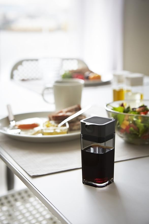 ワンプッシュで少しずつ注げる醤油差し。量を調整して注げる液体調味料容器。卓上でも調理時でも大活躍。醤油はもちろんオイル類でも使用可能。倒してもこぼれにくい、押し出し式。