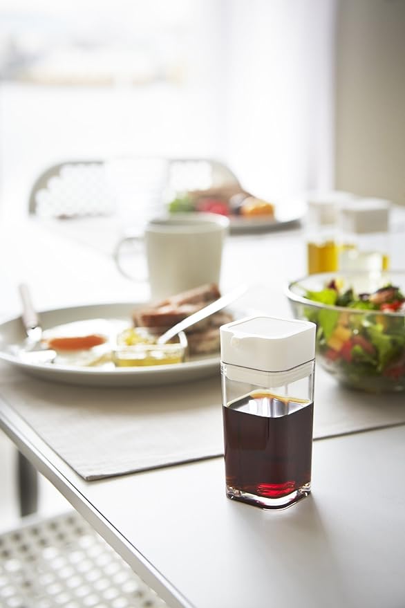 ワンプッシュで少しずつ注げる醤油差し。量を調整して注げる液体調味料容器。卓上でも調理時でも大活躍。醤油はもちろんオイル類でも使用可能。倒してもこぼれにくい、押し出し式。