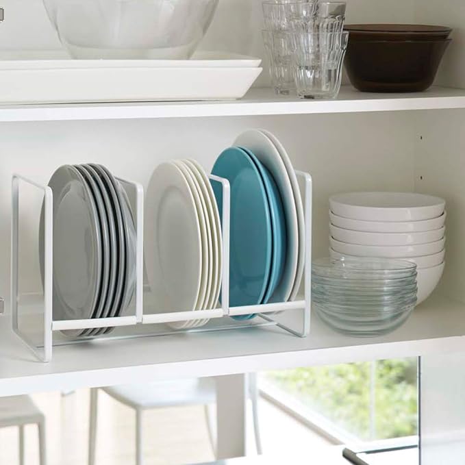大皿から小皿まで立てて収納できるので出し入れもスムーズ。種類別・サイズ別に分けて省スペースにたくさん収納できます。戸棚にお皿の種類やサイズに分別してキレイに収納できます。シリコンのストッパーが付いているので、収納したお皿が横滑りしません。