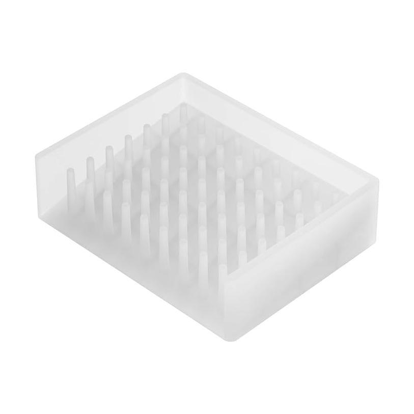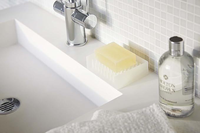 点で支えるから石鹸が乾きやすく長持ち。斜面で水を切ることができるソープトレイ。石鹸がこぼれ落ちないように3方向に壁を設けています。斜面になっているので石鹸の水を流してくれます。柔らかいシリコン製なので、お手入れも簡単です。