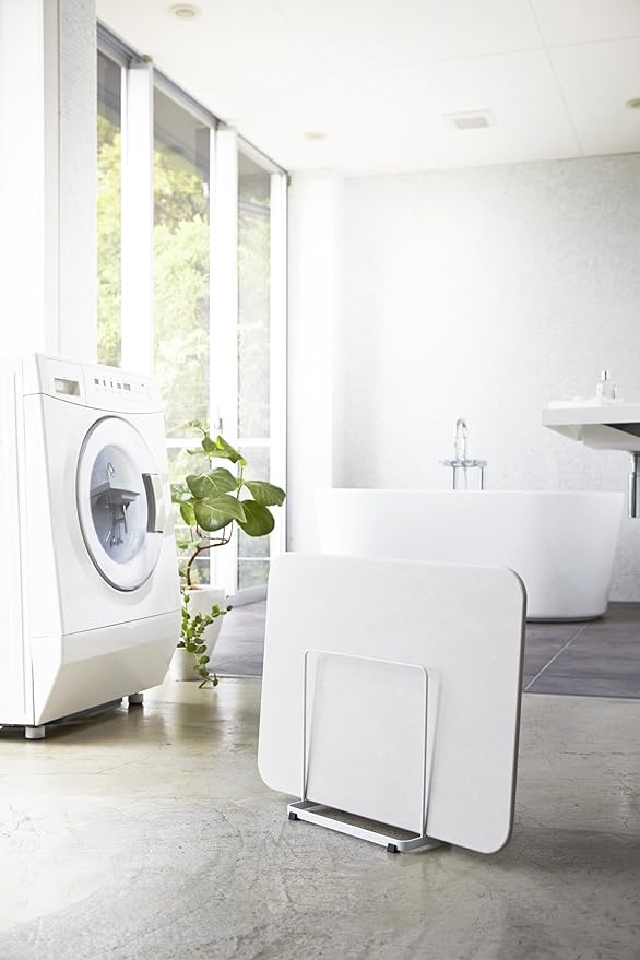 置き場所に困る珪藻土バスマットをスリムに立てて収納。珪藻土バスマットを傷つけないクッション付き。