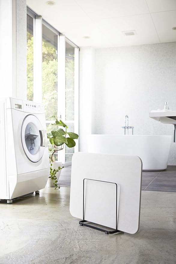 置き場所に困る珪藻土バスマットをスリムに立てて収納。珪藻土バスマットを傷つけないクッション付き。