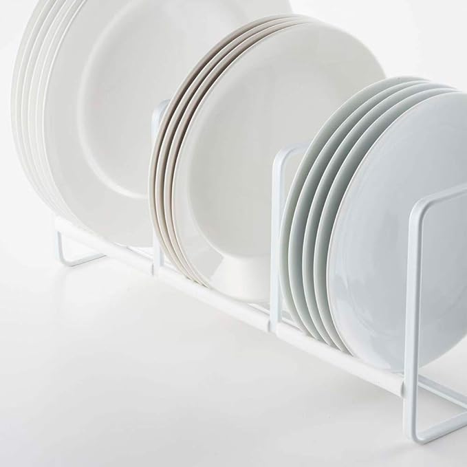 小皿から中皿まで立てて収納できるので出し入れもスムーズ。種類別・サイズ別に分けて省スペースにたくさん収納できます。戸棚にお皿の種類やサイズに分別してキレイに収納できます。シリコンのストッパーが付いているので、収納したお皿が横滑りしません。