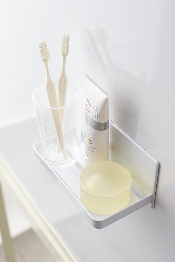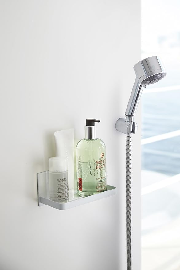 石鹸・歯ブラシ・タンブラーなどの収納にも。マグネットが付く浴室壁面に簡単取り付けのラック。ディスペンサーボトルの追加棚として便利。磁石がくっつく浴室壁面に簡単取り付けのバスシリーズ。壁面を傷付けにくく、錆びないラバータイプのマグネット。貼り付け位置が簡単に調節可能。