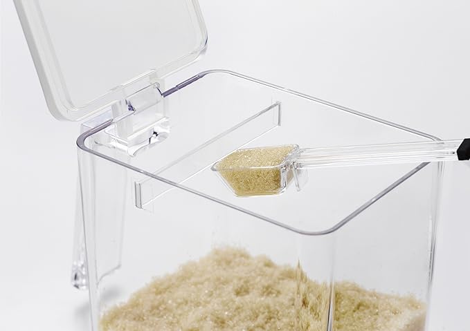 すり切り板で簡単に計量できる調味料ストッカー3個セット上段は市販のボトルなどを収納可能。ガード付きで安心下段はフラット設計上下にマット付きで汚れてもサッと洗えます調味料ストッカータワーLサイズが3つ、Sサイズ(別売)が5つ収納できます付属の小さじスプーン(5ml)をすり切れます。各調味料ストッカーに1本付属。使わない時はスプーンを本体に収納パーツはすべて分解して洗えます分別シールと書き込みができる無地シール付き蓋は片手で開けてそのままキープ。