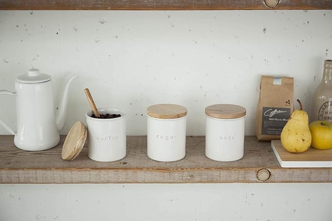 ヴィンテージ加工された風合いが美しい陶器キャニスターです。ヴィンテージ加工された風合い。 北欧風インテリアとの相性がいいデザインで キッチンをオシャレな空間に。無地・シュガー・ソルト・コーヒーの4種類あるので 自分の好きなようにカスタマイズできます。