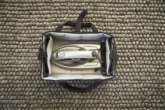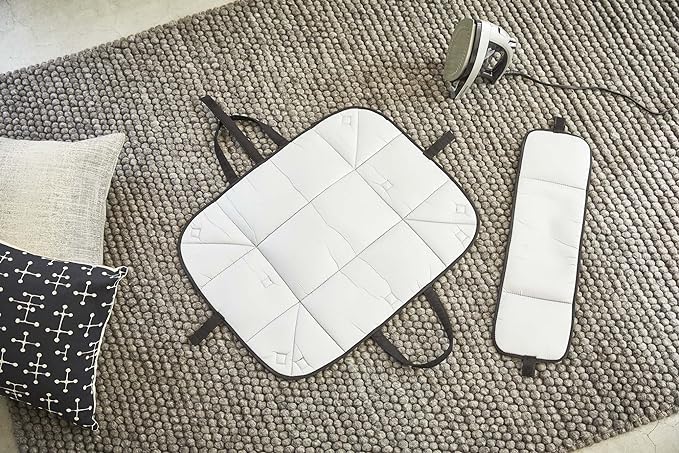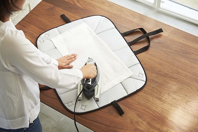 置き場所に困るアイロンを収納。バッグを広げるとアイロンマットに早変わり。便利なアイロン収納マットです。ふた部分は、丸めて袖の中に入れて仕上げ馬として使用できます。