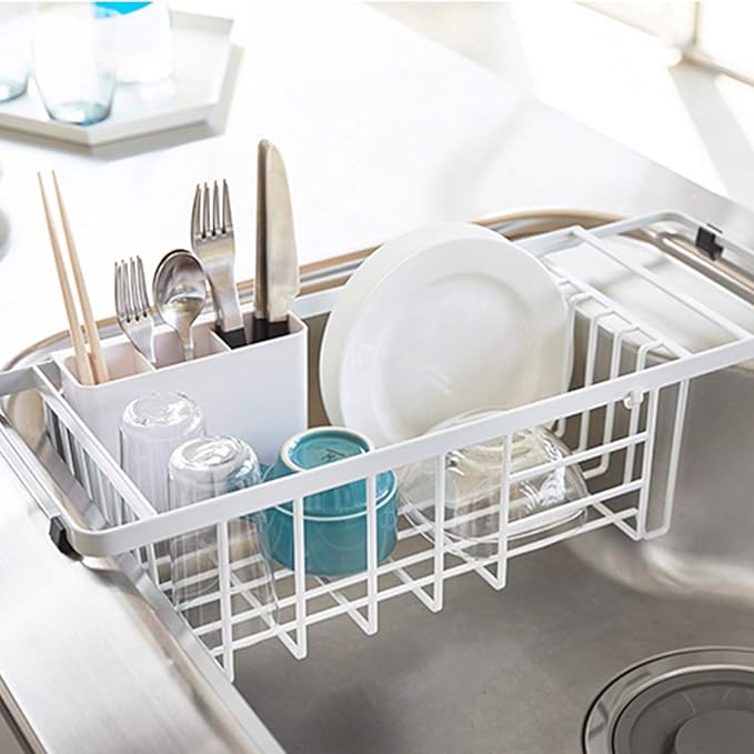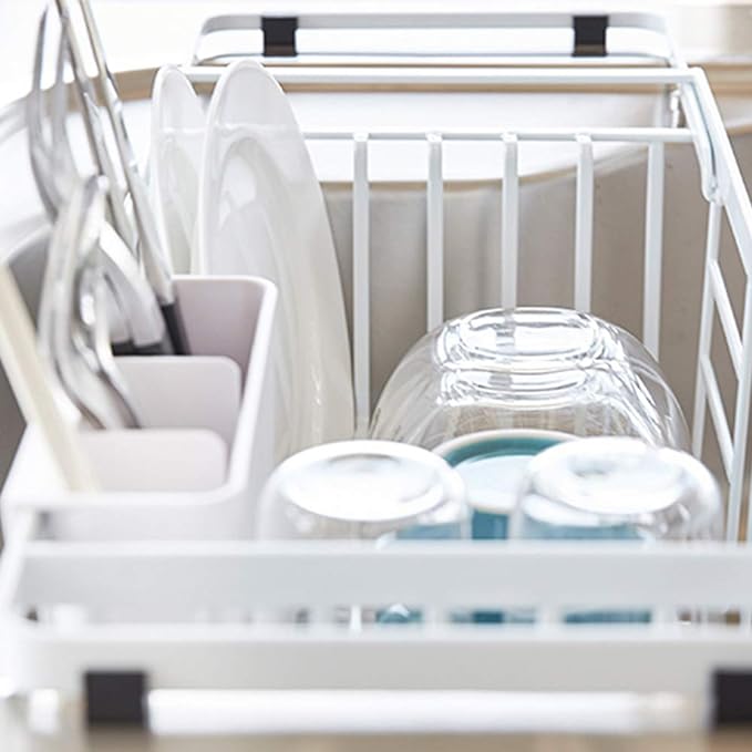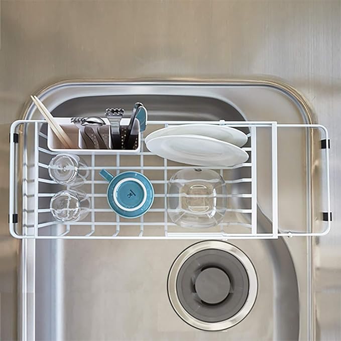 伸縮可能でシンクの内寸約37cm~47cmまでに対応。水切れが良く、よく使う食器類から調理道具までたっぷり収納できます。