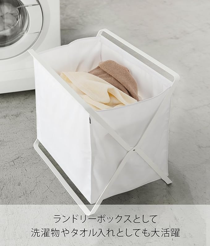 バッグや手荷物を床に直接置かずに一時置きできるボックス。洗濯物やタオルを入れてランドリーボックスとしても使えます。マガジンボックスとしても使えます。使わない時は折りたたんでスリムに収納。