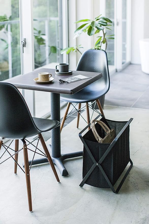 バッグや手荷物を床に直接置かずに一時置きできるボックス。洗濯物やタオルを入れてランドリーボックスとしても使えます。マガジンボックスとしても使えます。使わない時は折りたたんでスリムに収納。