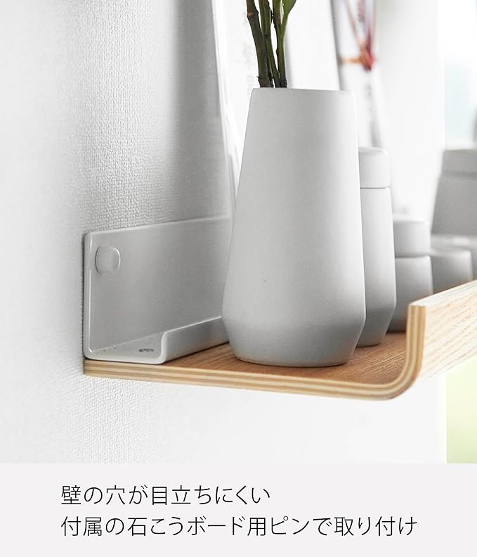 石こうボード用ピンで簡単取り付け。美しい木目がお部屋の雰囲気に合いやすい神棚です。お手持ちの神具と合わせて使える神棚。見上げた時に美しい木目が目に入ります。神札が立つように仕切りがついています。壁の穴が目立ちにくい石こうボードピン壁に取り付けられます。