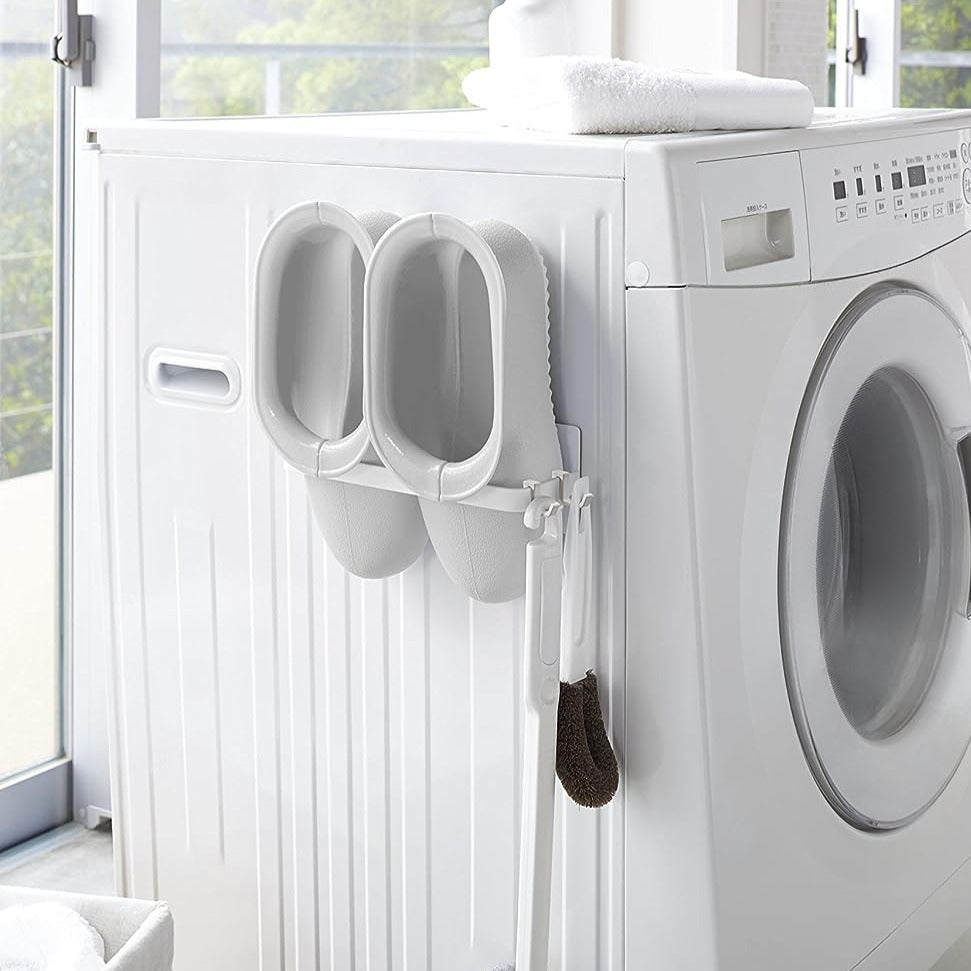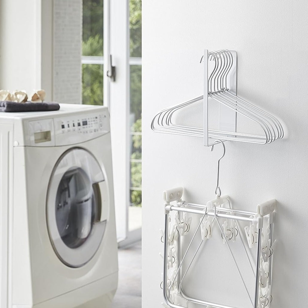 洗濯機横に設置できるハンガー収納です。マグネットで簡単に設置することができます。ランドリールームのデッドスペースを活用してハンガーを収納できるのでとても便利です。