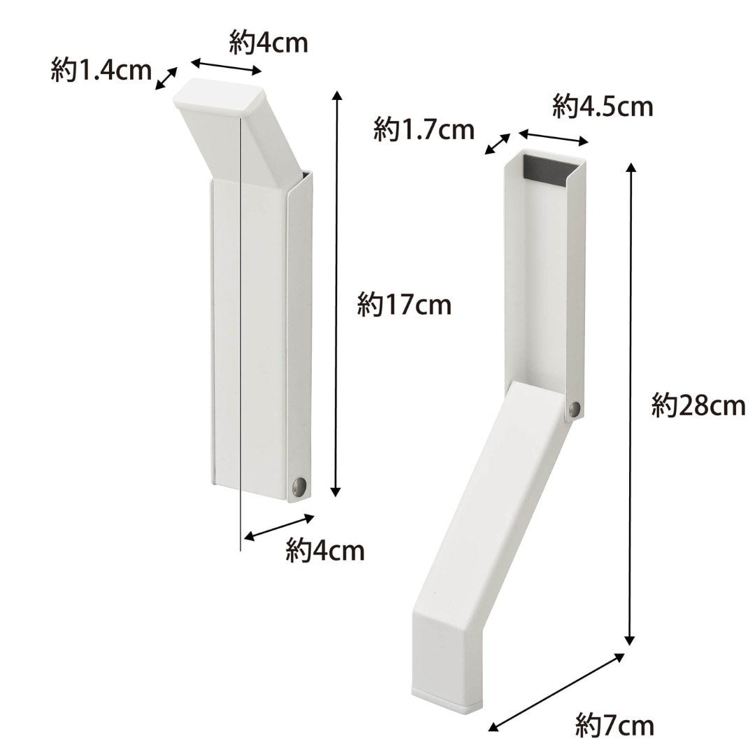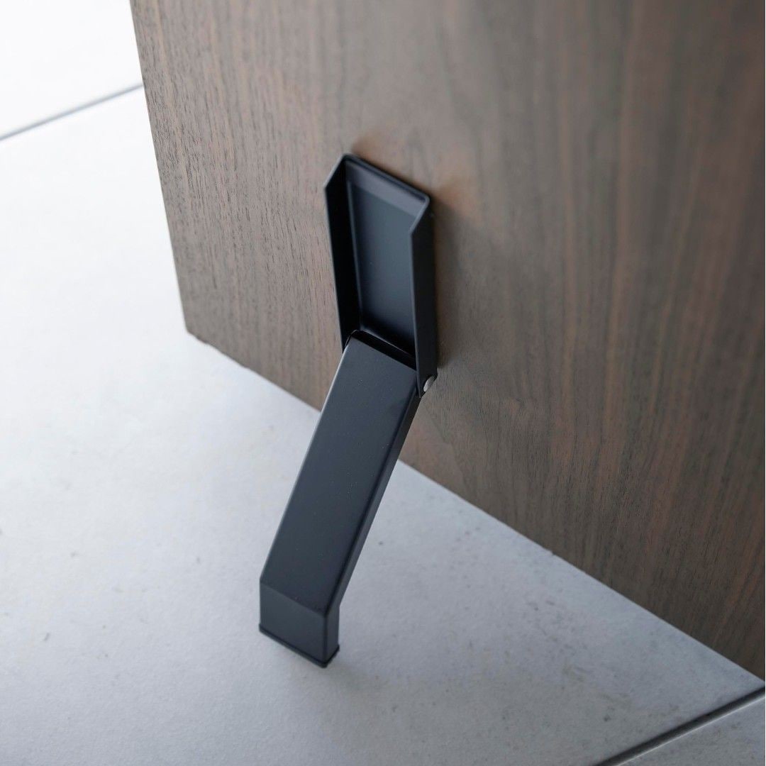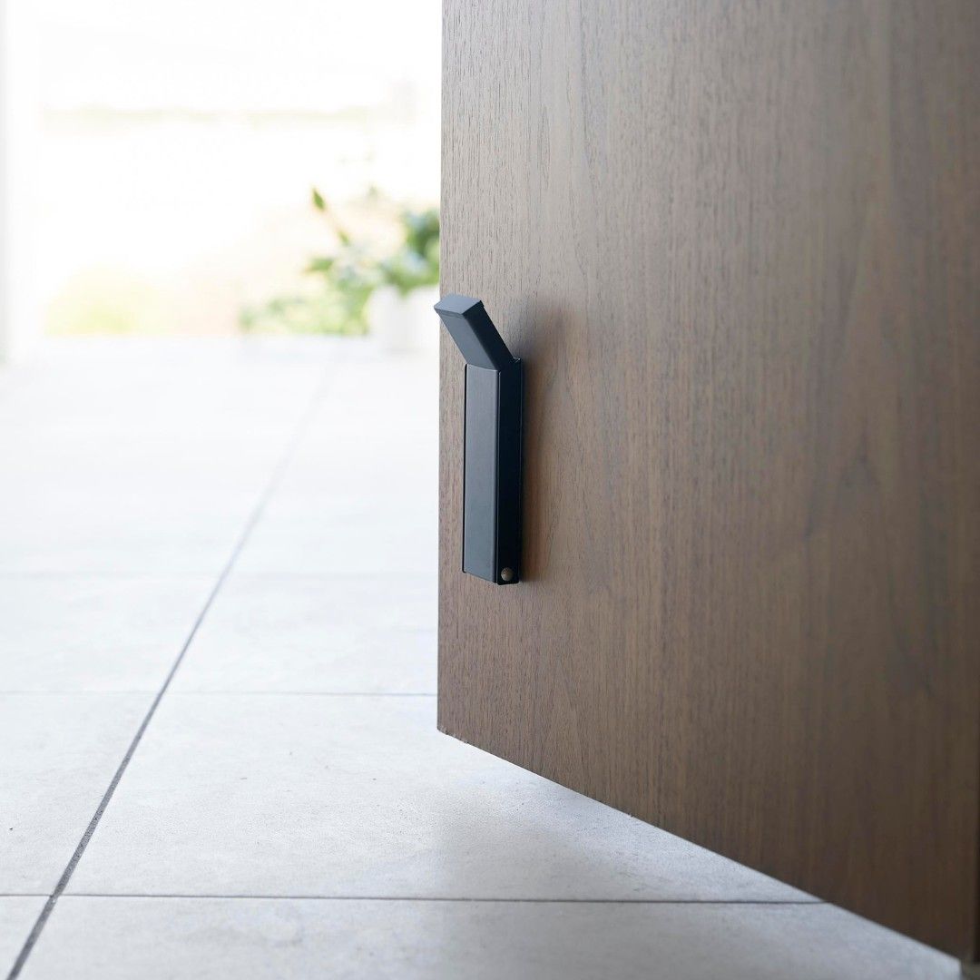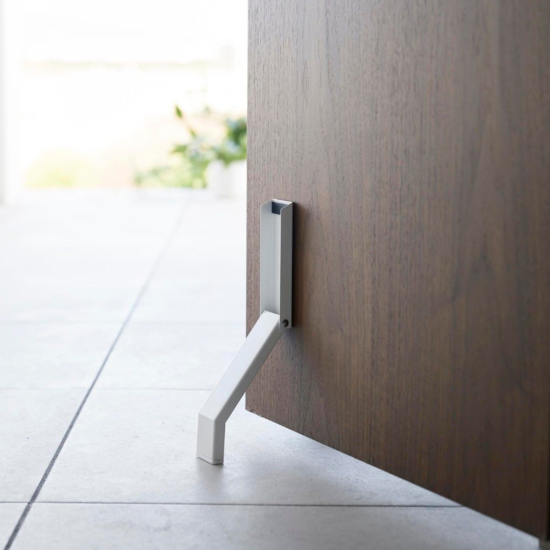 両面テープで取り付け、ドアストッパー 玄関ドアに両面テープで簡単に取り付けができるドアストッパーです。荷物の移動でドアを開けておきたい時に便利。折り畳み式で使用しない時はコンパクトに収納できるので足が引っかかったりする心配もありません。マグネットが付かない凹凸のない玄関ドアにもおすすめです。玄関ドアに合わせやすいシンプルカラー カラーはどんな玄関にも合わせやすいホワイトとブラックからお選びいただけます。単色やナチュラルな木目にはホワイト、濃い木目にはブラックなどご自宅の玄関ドアに合わせて選んでみてください。両手が塞がっていてもOK 荷物を持っていると両手が塞がってドアストッパーが立てられない、なんて心配もいりません。片足でも簡単に開けるように、先端は滑り止めにもなるようシリコーン素材になっています。折り畳み式でコンパクトに 使用しない時は折り畳めてコンパクトサイズに。しまう時も片足で操作しやすいデザインなのもポイントです。玄関ドアに合わせて選べるサイズ towerの『テープで貼りつける折り畳みドアストッパー』はドア下部から地面との間が15cm以内の場合に取り付け可能です。15cmを超える場合には、別のシリーズ『【smart】テープで貼りつける折り畳みドアストッパー ロング』をご選択ください。