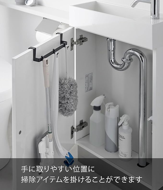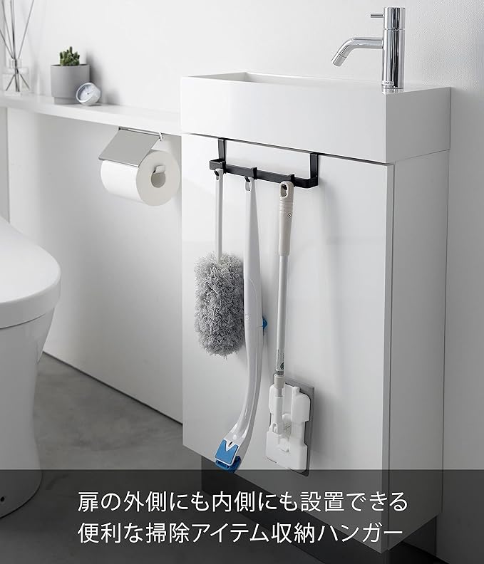tower トイレ キャビネット扉ハンガー ブラック 掃除用品収納 隠せる収納