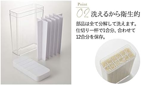 お米が1合ごとに12分割されているから必要な分のお米を直接お釜に注ぐだけ。冷蔵庫のドアポケットや野菜室にも収納できます。必要なお米の量に合わせて1合なら1つ、2合なら2つキャップを開けるだけなので計量をする手間を省けます。